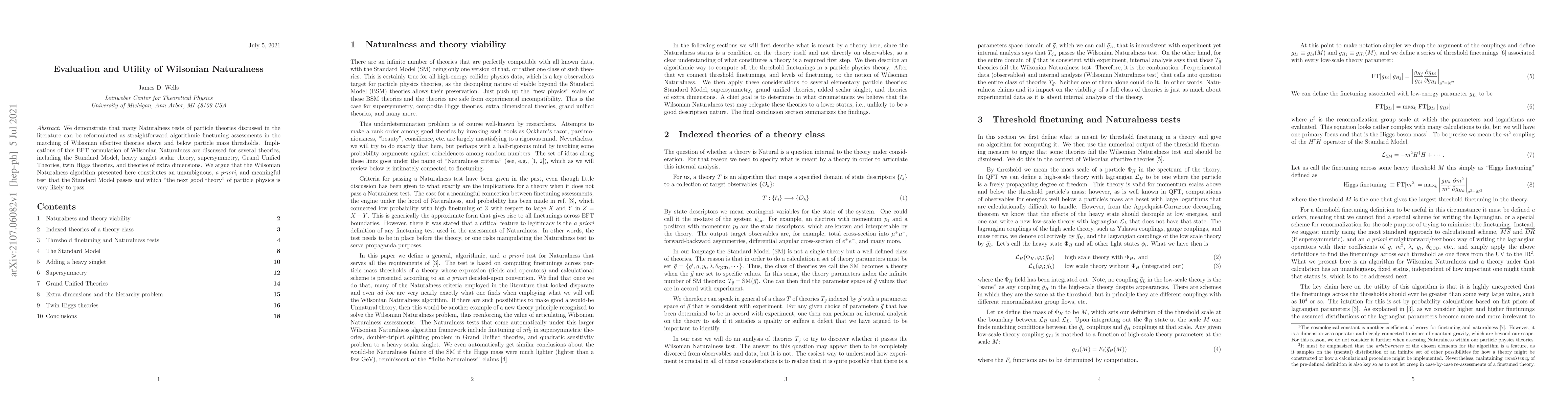 We demonstrate that many Naturalness tests of particle theories discussed in the literature can be reformulated as straightforward algorithmic finetuning assessments in the matching of Wilsonian effective theories above and below particle mass thresholds. Implications of this EFT formulation of Wilsonian Naturalness are discussed for several theories, including the Standard Model, heavy singlet scalar theory, supersymmetry, Grand Unified Theories, twin Higgs theories, and theories of extra dimensions. We argue that the Wilsonian Naturalness algorithm presented here constitutes an unambiguous, a priori, and meaningful test that the Standard Model passes and which "the next good theory" of particle physics is very likely to pass.