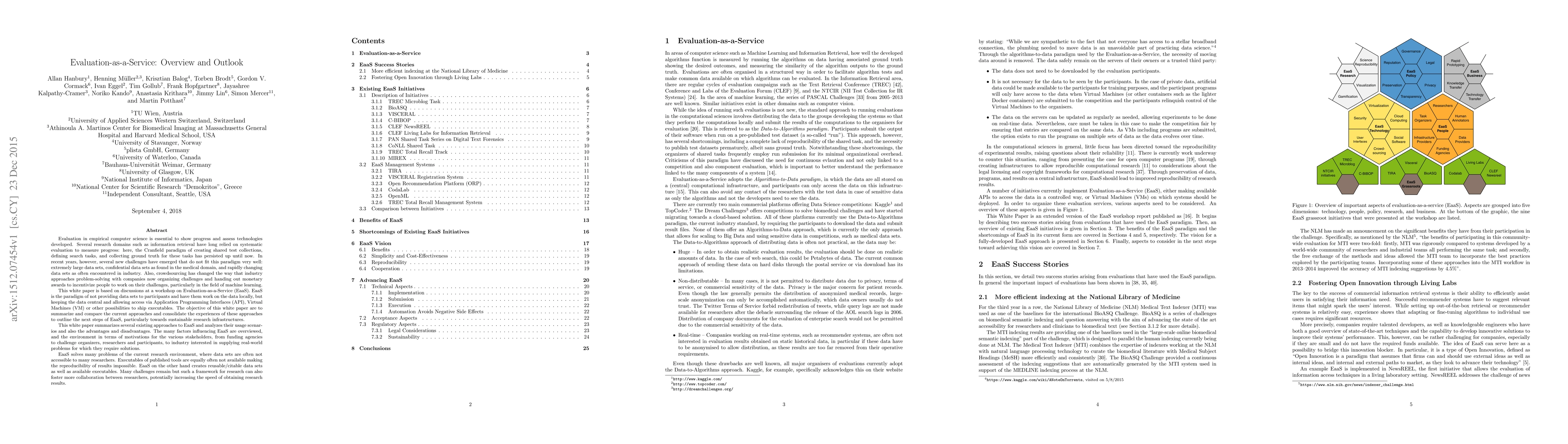 This research paper evaluates the challenges of traditional evaluation paradigms in empirical computer science due to large data sets, confidentiality, and changing data, proposing a new approach called Evaluation-as-a-Service (EaaS) that allows local processing on shared datasets.