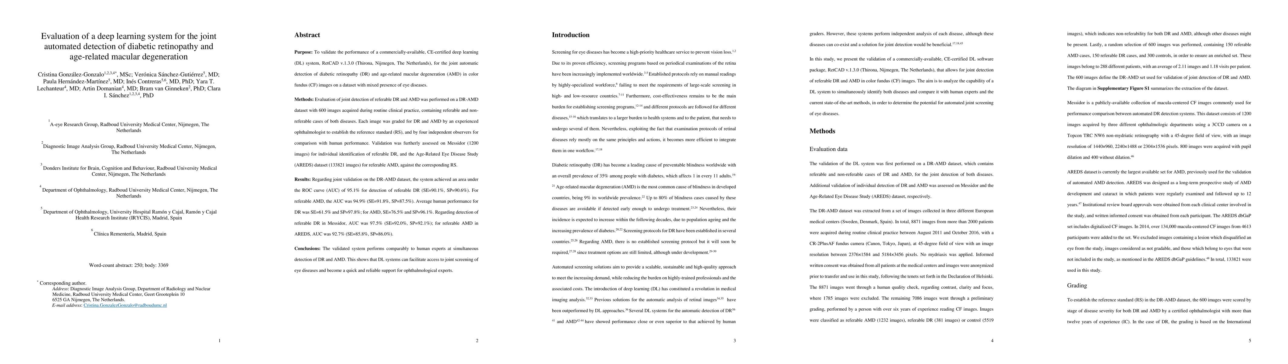 This study evaluates a deep learning system for the joint automated detection of diabetic retinopathy and age-related macular degeneration, achieving high AUC scores comparable to human experts, suggesting its potential as a reliable screening tool in ophthalmology.