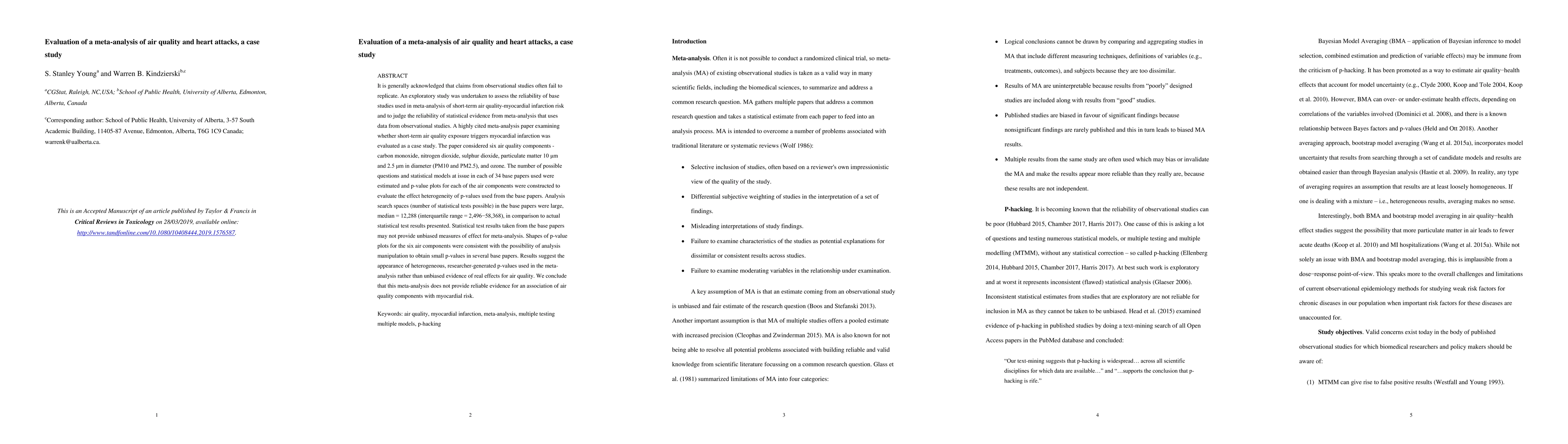 A meta-analysis of air quality and heart attacks found that statistical test results may not provide unbiased measures of effect due to analysis manipulation, casting doubt on the association between air quality components and myocardial risk.
