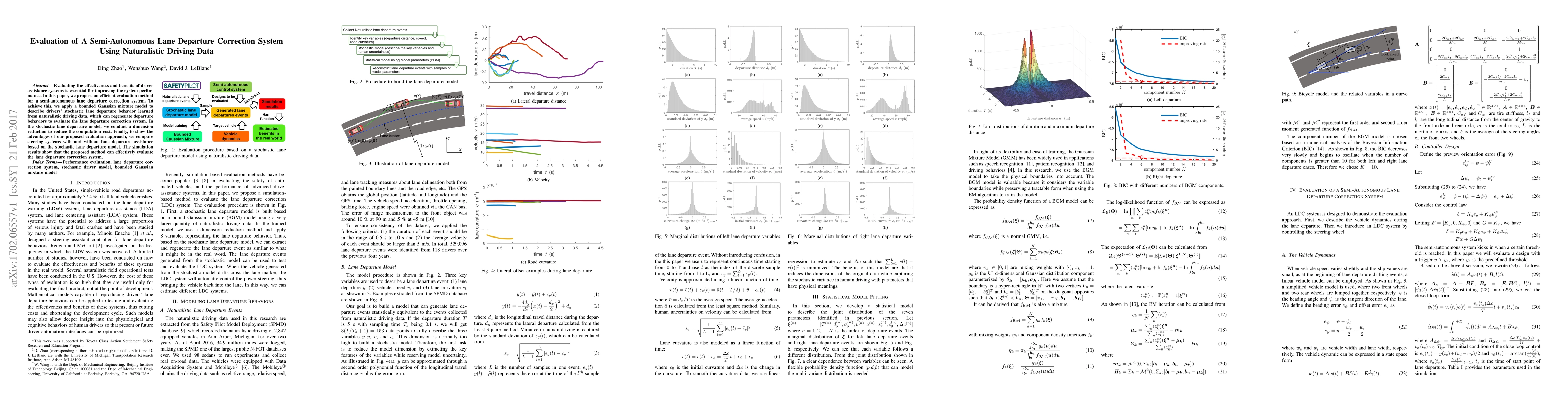 This paper proposes an evaluation method for a semi-autonomous lane departure correction system using a bounded Gaussian mixture model derived from naturalistic driving data. The method effectively assesses the system's performance by comparing assisted and unassisted steering systems, demonstrating its advantages through simulation results.