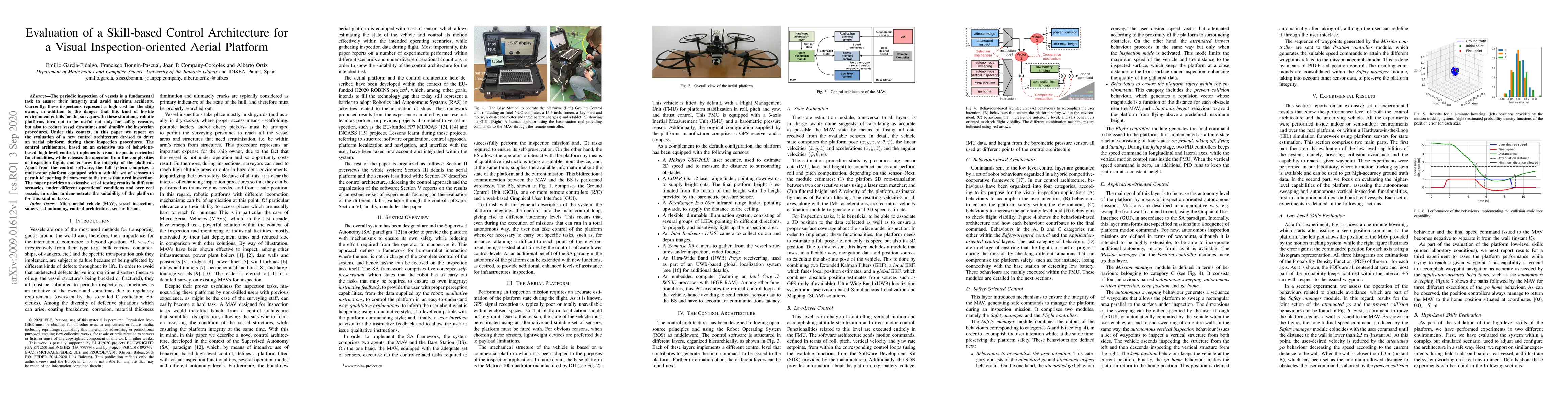 This paper evaluates a new skill-based control architecture for an aerial platform designed for vessel inspection, utilizing behavior-based high-level control to simplify and automate the inspection process, and presents extensive testing results demonstrating its effectiveness in various operational scenarios.