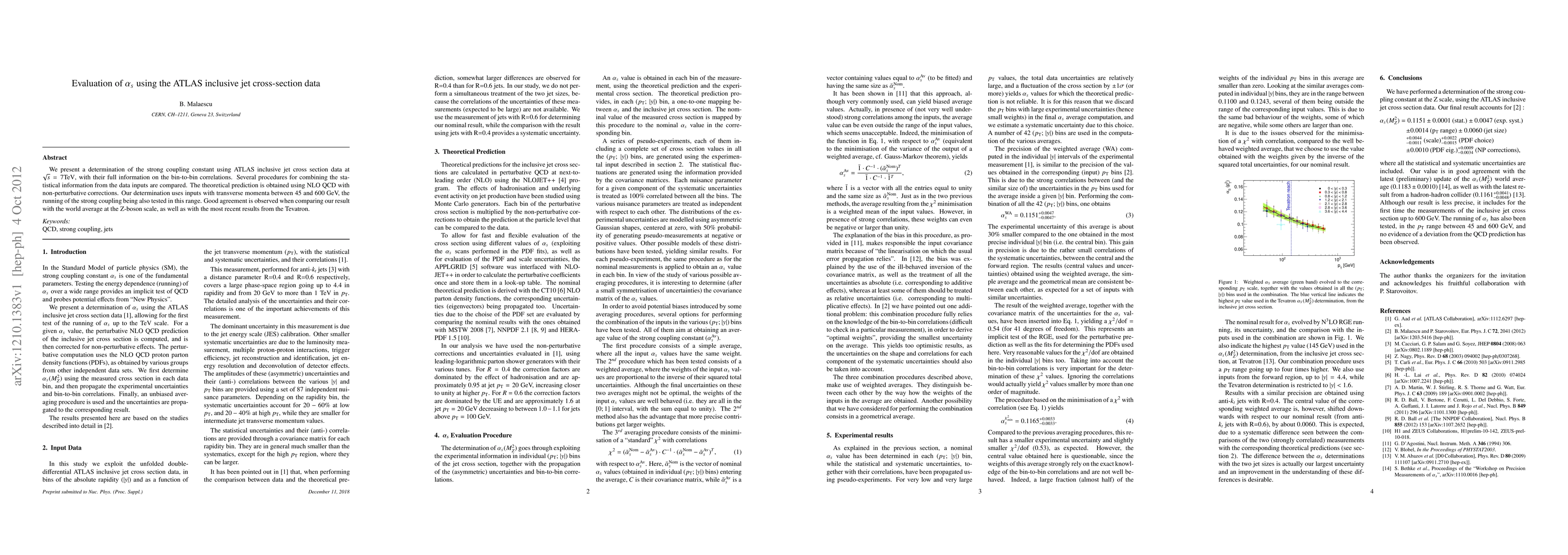 This paper determines the strong coupling constant alpha_s using ATLAS inclusive jet cross-section data at 7 TeV, employing NLO QCD and non-perturbative corrections. The result shows good agreement with the world average and recent Tevatron results.