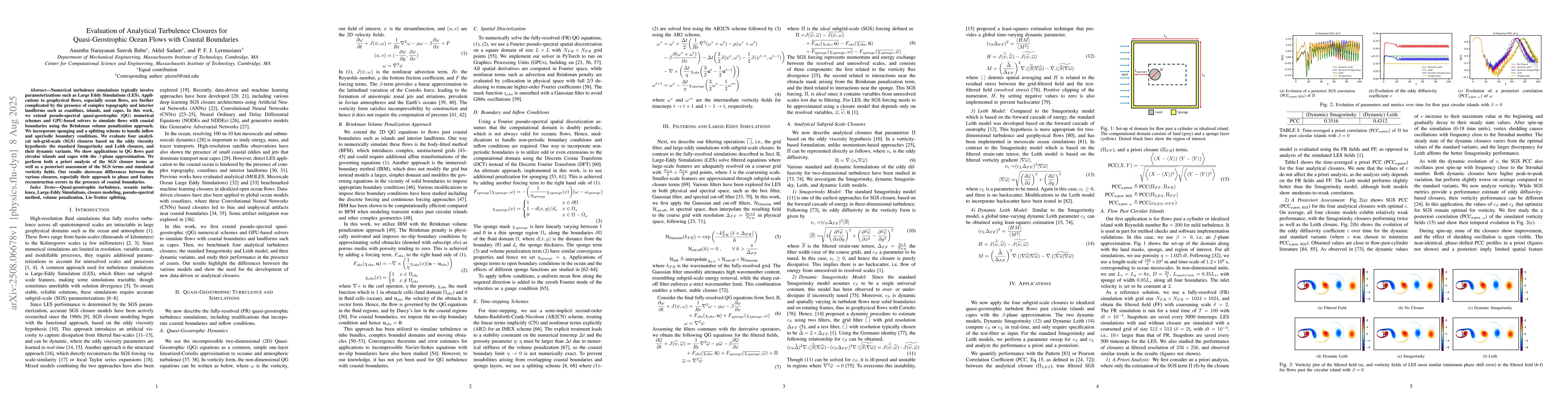 Numerical turbulence simulations typically involve parameterizations such as Large Eddy Simulations (LES). Applications to geophysical flows, especially ocean flows, are further complicated by the presence of complex topography and interior landforms such as coastlines, islands, and capes. In this work, we extend pseudo-spectral quasi-geostrophic (QG) numerical schemes and GPU-based solvers to simulate flows with coastal boundaries using the Brinkman volume penalization approach. We incorporate sponging and a splitting scheme to handle inflow and aperiodic boundary conditions. We evaluate four analytical sub-grid-scale (SGS) closures based on the eddy viscosity hypothesis: the standard Smagorinsky and Leith closures, and their dynamic variants. We show applications to QG flows past circular islands and capes with the beta-plane approximation. We perform both a priori analysis of the SGS closure terms as well as a posteriori assessment of the SGS terms and simulated vorticity fields. Our results showcase differences between the various closures, especially their approach to phase and feature reconstruction errors in the presence of coastal boundaries.