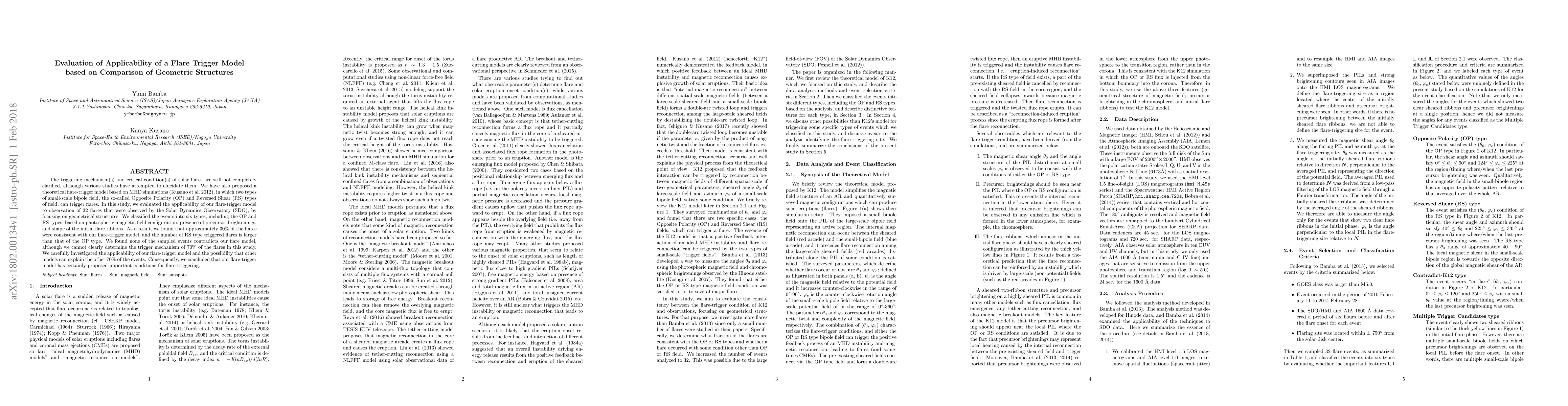 The triggering mechanism(s) and critical condition(s) of solar flares are still not completely clarified, although various studies have attempted to elucidate them. We have also proposed a theoretical flare-trigger model based on MHD simulations Kusano et al. 2012, in which two types of small-scale bipole field, the so-called Opposite Polarity (OP) and Reversed Shear (RS) types of field, can trigger flares. In this study, we evaluated the applicability of our flare-trigger model to observation of 32 flares that were observed by the Solar Dynamics Observatory (SDO), by focusing on geometrical structures. We classified the events into six types, including the OP and RS types, based on photospheric magnetic field configuration, presence of precursor brightenings, and shape of the initial flare ribbons. As a result, we found that approximately 30% of the flares were consistent with our flare-trigger model, and the number of RS type triggered flares is larger than that of the OP type. We found none of the sampled events contradicts our flare model, although we cannot clearly determine the trigger mechanism of 70% of the flares in this study. We carefully investigated the applicability of our flare-trigger model and the possibility that other models can explain the other 70% of the events. Consequently, we concluded that our flare-trigger model has certainly proposed important conditions for flare-triggering.