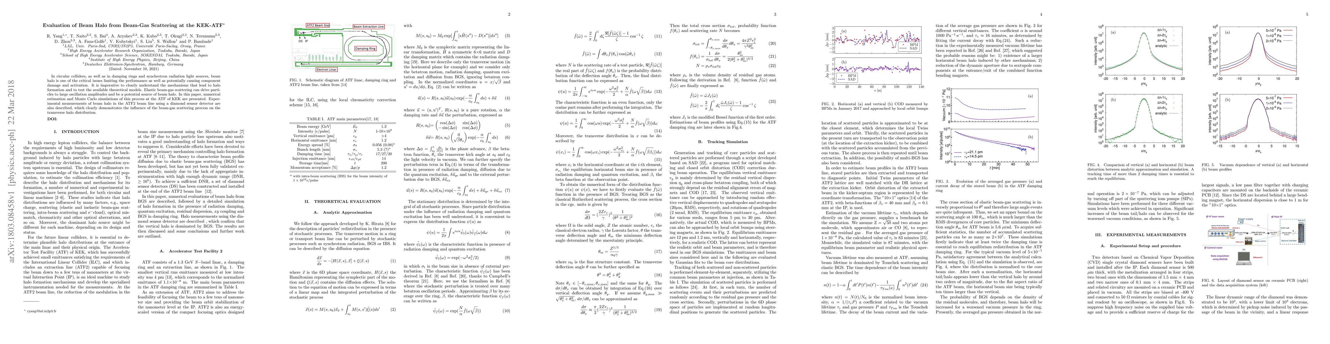 In circular colliders, as well as in damping rings and synchrotron radiation light sources, beam halo is one of the critical issues limiting the performance as well as potentially causing component damage and activation. It is imperative to clearly understand the mechanisms that lead to halo formation and to test the available theoretical models. Elastic beam-gas scattering can drive particles to large oscillation amplitudes and be a potential source of beam halo. In this paper, numerical estimation and Monte Carlo simulations of this process at the ATF of KEK are presented. Experimental measurements of beam halo in the ATF2 beam line using a diamond sensor detector are also described, which clearly demonstrates the influence of the beam-gas scattering process on the transverse halo distribution.