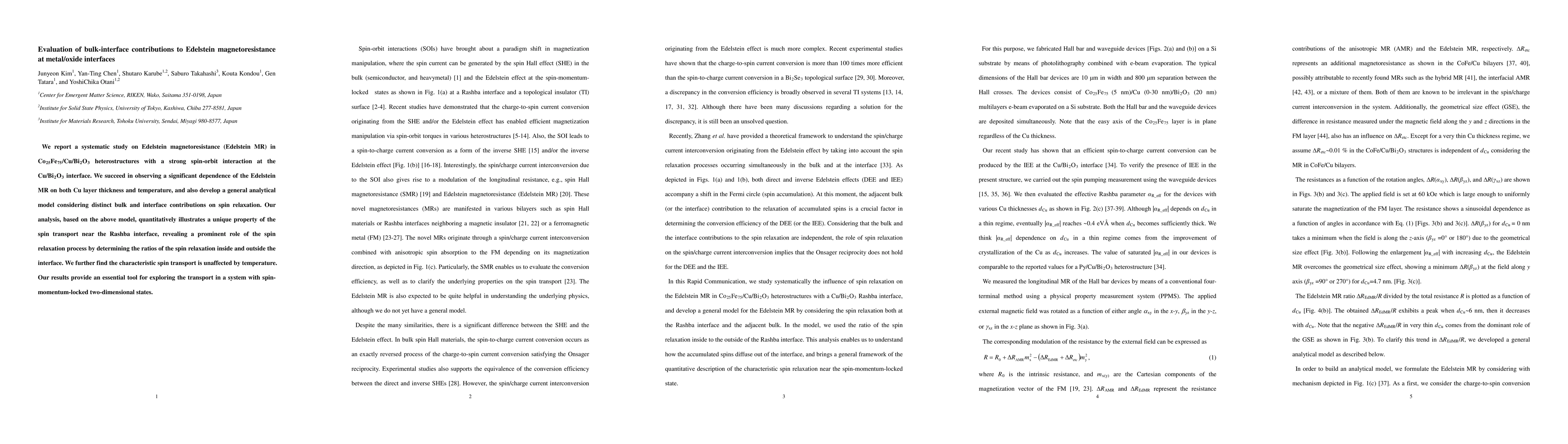 Researchers studied Edelstein magnetoresistance in metal/oxide interfaces, finding that interface contributions play a significant role in spin relaxation and transport, with no effect from temperature.