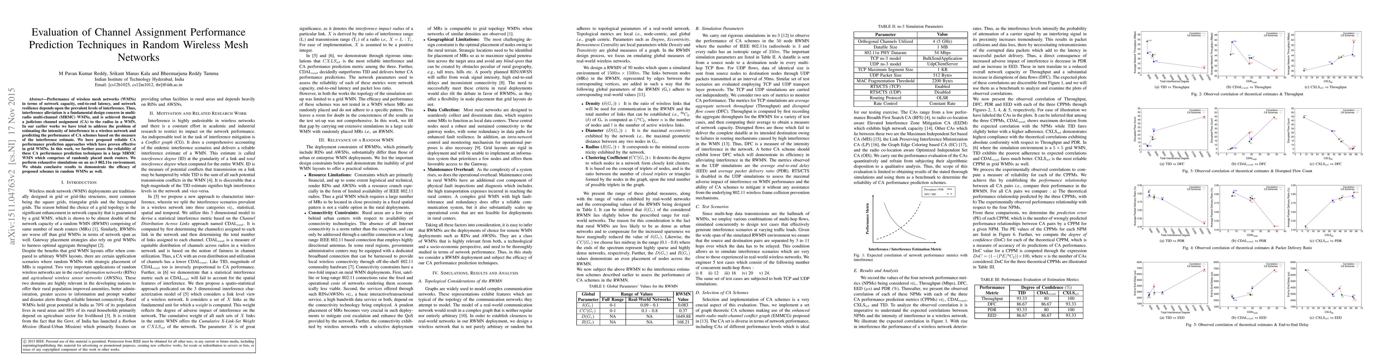 This paper evaluates the effectiveness of previously proposed channel assignment performance prediction techniques in random wireless mesh networks, demonstrating their reliability through extensive simulations in a ns-3 802.11n environment. The results confirm the efficacy of these techniques in managing interference and predicting performance in large, randomly deployed mesh networks.