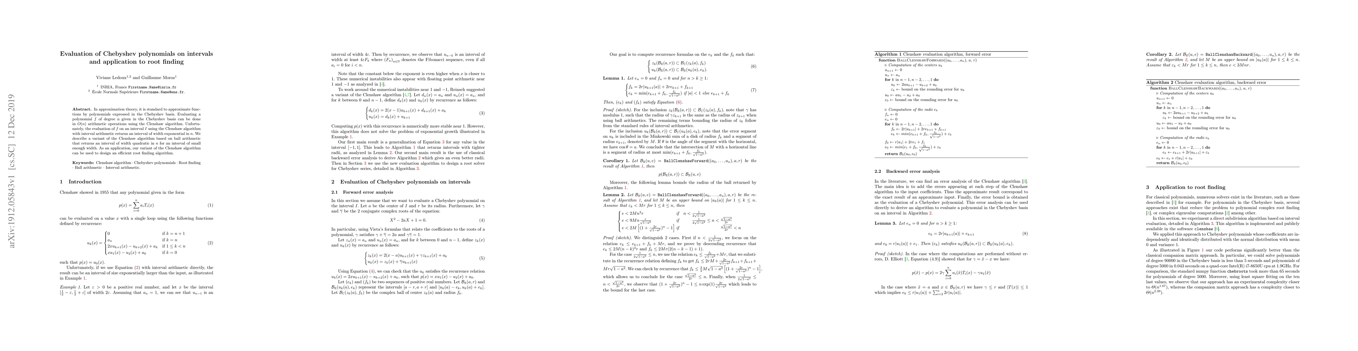 A new variant of the Clenshaw algorithm for evaluating Chebyshev polynomials on intervals uses ball arithmetic, reducing interval width from exponential to quadratic in degree n for small interval widths.