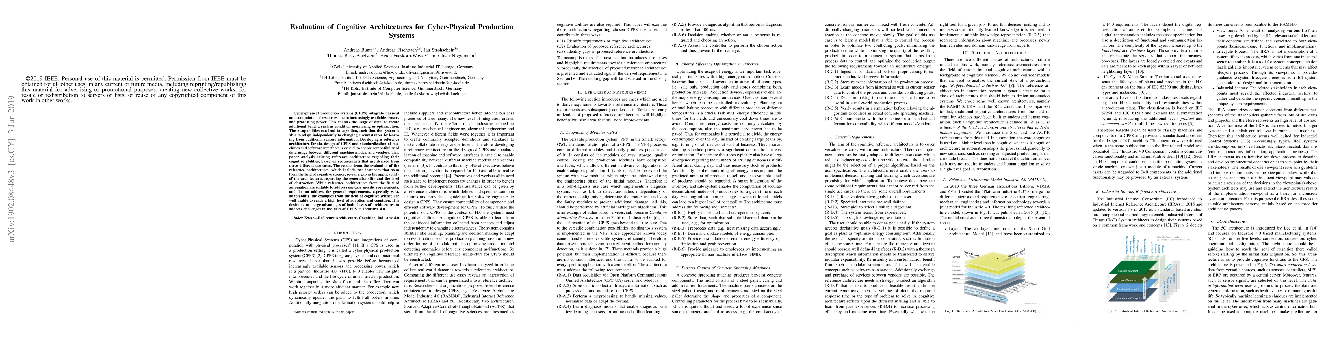 Researchers evaluated cognitive architectures for cyber-physical production systems to improve adaptability and cognition in Industrie 4.0, finding a gap between field-specific architectures that excel in one area and another that offers high levels of adaptation and cognition.