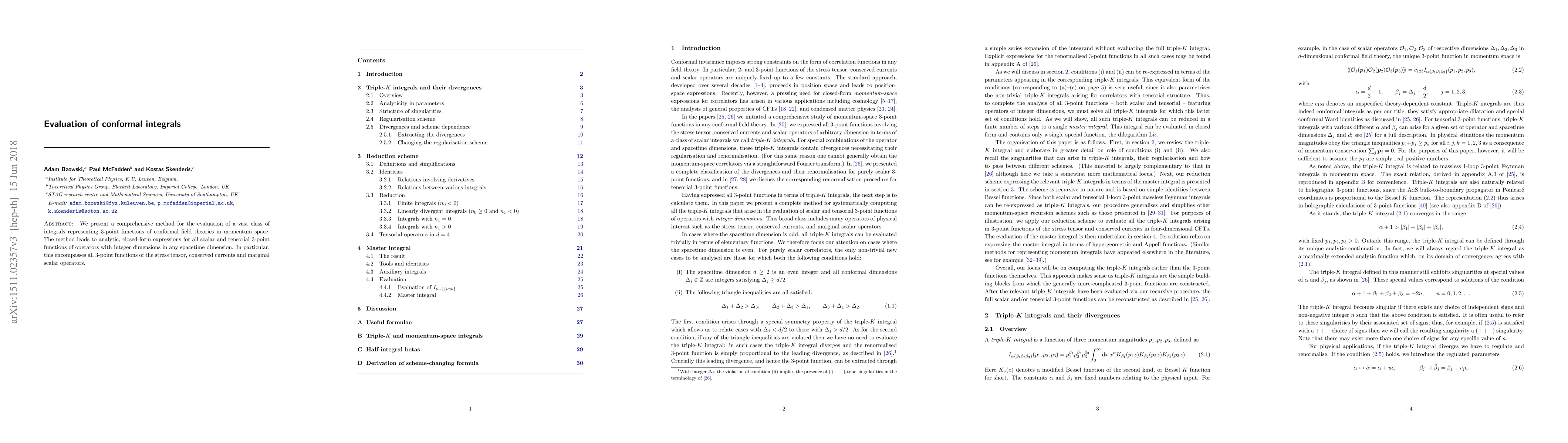We present a comprehensive method for the evaluation of a vast class of integrals representing 3-point functions of conformal field theories in momentum space. The method leads to analytic, closed-form expressions for all scalar and tensorial 3-point functions of operators with integer dimensions in any spacetime dimension. In particular, this encompasses all 3-point functions of the stress tensor, conserved currents and marginal scalar operators.