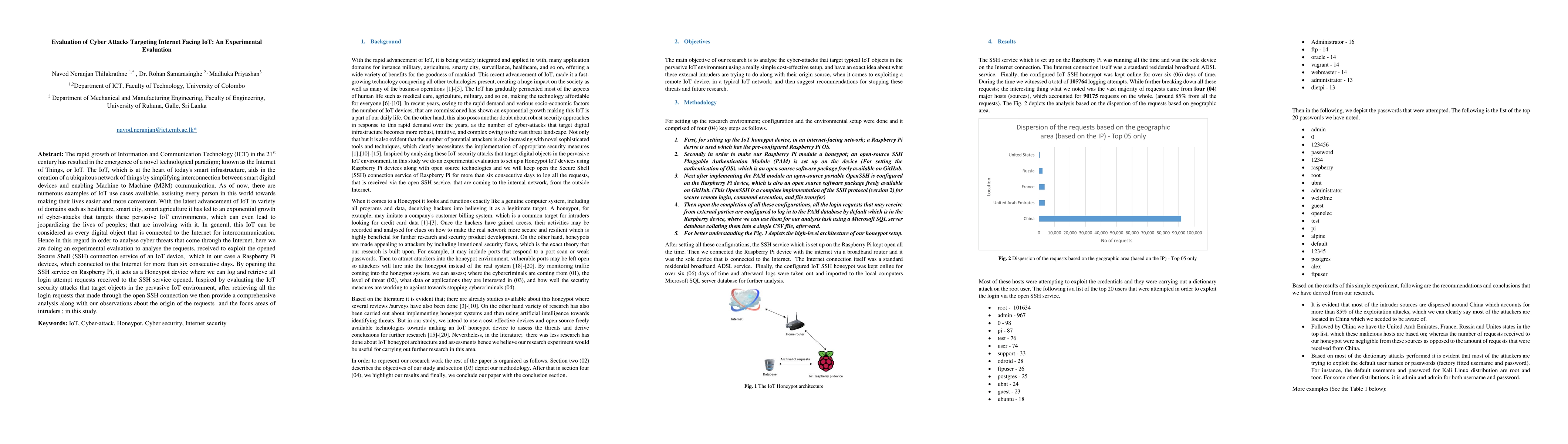 The rapid growth of Information and Communication Technology (ICT) in the 21st century has resulted in the emergence of a novel technological paradigm; known as the Internet of Things, or IoT. The IoT, which is at the heart of today's smart infrastructure, aids in the creation of a ubiquitous network of things by simplifying interconnection between smart digital devices and enabling Machine to Machine (M2M) communication. As of now, there are numerous examples of IoT use cases available, assisting every person in this world towards making their lives easier and more convenient. With the latest advancement of IoT in variety of cyber-attacks that targets these pervasive IoT environments, which can even lead to jeopardizing the lives of peoples; that are involving with it. In general, this IoT can be considered as every digital object that is connected to the Internet for intercommunication. Hence in this regard in order to analyse cyber threats that come through the Internet, here we are doing an experimental evaluation to analyse the requests, received to exploit the opened Secure Shell (SSH) connection service of an IoT device, which in our case a Raspberry Pi devices, which connected to the Internet for more than six consecutive days. By opening the SSH service on Raspberry Pi, it acts as a Honeypot device where we can log and retrieve all login attempt requests received to the SSH service opened. Inspired by evaluating the IoT security attacks that target objects in the pervasive IoT environment, after retrieving all the login requests that made through the open SSH connection we then provide a comprehensive analysis along with our observations about the origin of the requests and the focus areas of intruders; in this study.