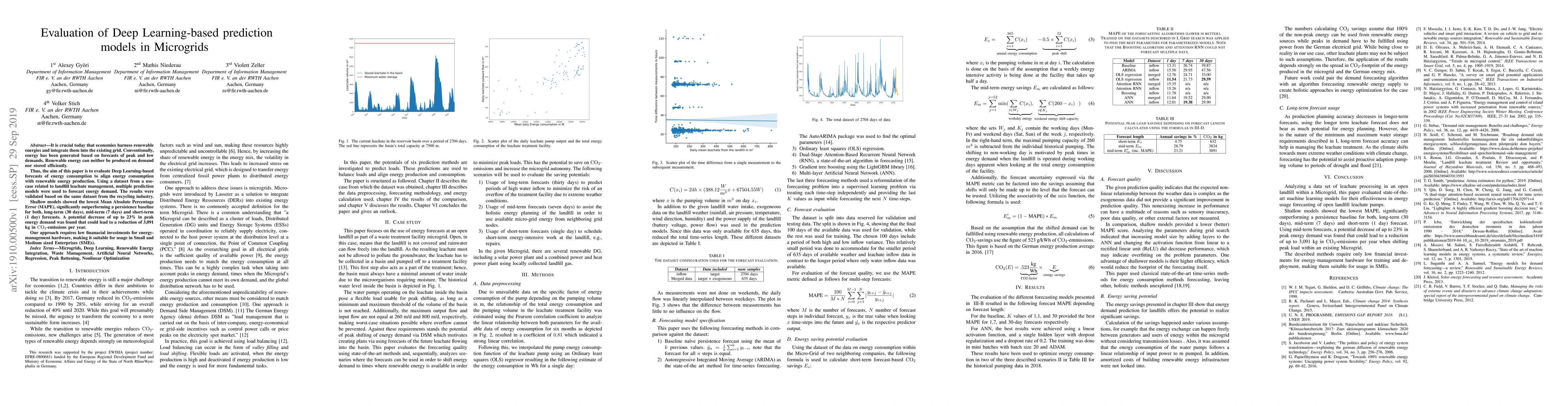 It is crucial today that economies harness renewable energies and integrate them into the existing grid. Conventionally, energy has been generated based on forecasts of peak and low demands. Renewable energy can neither be produced on demand nor stored efficiently. Thus, the aim of this paper is to evaluate Deep Learning-based forecasts of energy consumption to align energy consumption with renewable energy production. Using a dataset from a use-case related to landfill leachate management, multiple prediction models were used to forecast energy demand.The results were validated based on the same dataset from the recycling industry. Shallow models showed the lowest Mean Absolute Percentage Error (MAPE), significantly outperforming a persistence baseline for both, long-term (30 days), mid-term (7 days) and short-term (1 day) forecasts. A potential decrease of up to 23% in peak energy demand was found that could lead to a reduction of 3,091 kg in CO2-emissions per year. Our approach requires low finanacial investments for energy-management hardware, making it suitable for usage in Small and Medium sized Enterprises (SMEs).