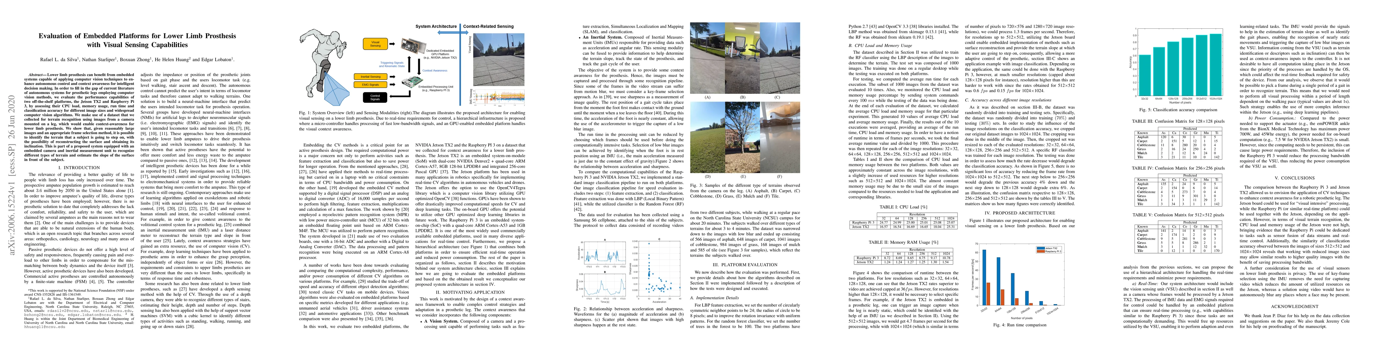 Researchers evaluated the performance of two embedded platforms for a lower limb prosthesis with visual sensing capabilities, finding that they can accurately identify terrain and estimate slope given reasonably large images.