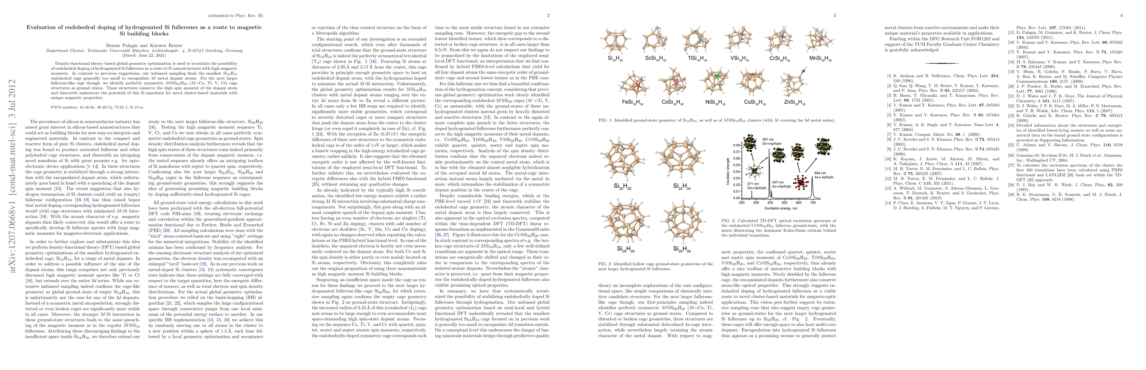 Density-functional theory based global geometry optimization is used to scrutinize the possibility of endohedral doping of hydrogenated Si fullerenes as a route to Si nanostructures with high magnetic moments. In contrast to previous suggestions, our unbiased sampling finds the smallest Si16H16 endohedral cage generally too small to encapsulate 3d metal dopant atoms. For the next larger fullerene-like cage though, we identify perfectly symmetric MSi20H20 (M = Co, Ti, V, Cr) cage structures as ground states. These structures conserve the high spin moment of the dopant atom and therewith underscore the potential of this Si nanoform for novel cluster-based materials with unique magnetic properties.