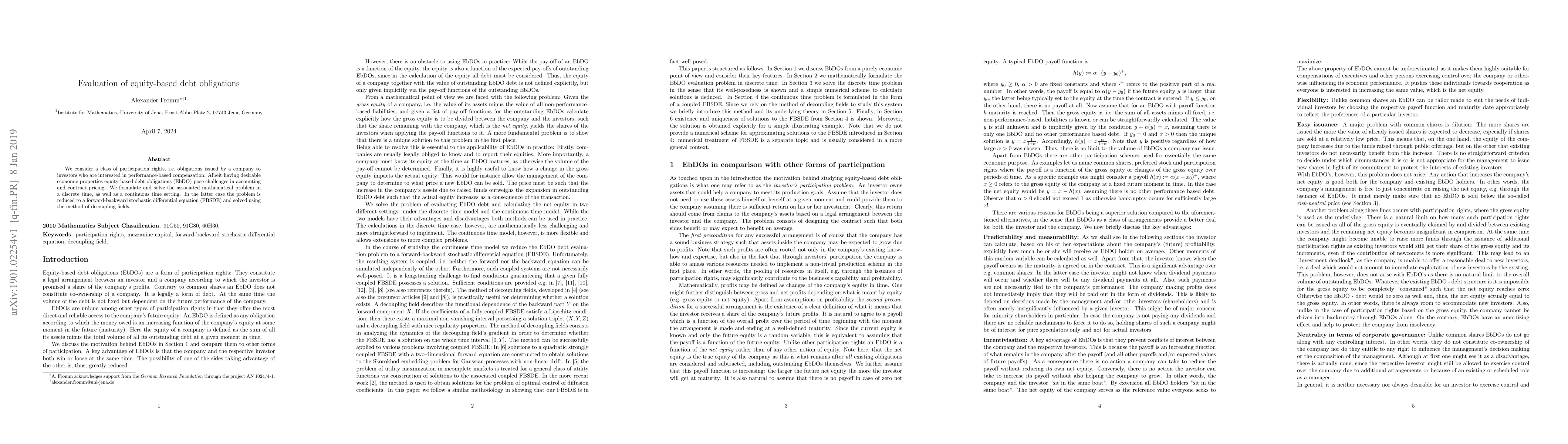 We consider a class of participation rights, i.e. obligations issued by a company to investors who are interested in performance-based compensation. Albeit having desirable economic properties equity-based debt obligations (EbDO) pose challenges in accounting and contract pricing. We formulate and solve the associated mathematical problem in a discrete time, as well as a continuous time setting. In the latter case the problem is reduced to a forward-backward stochastic differential equation (FBSDE) and solved using the method of decoupling fields.