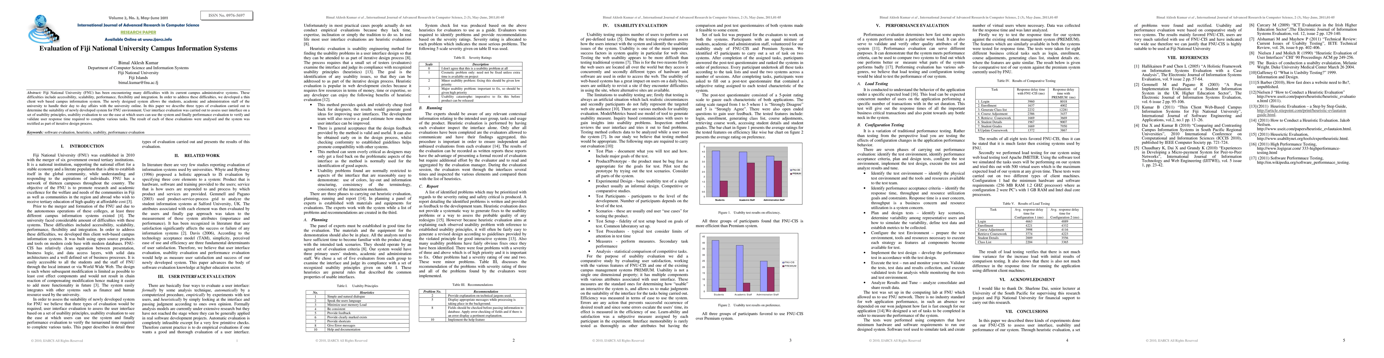 This paper evaluates Fiji National University's new thin client web-based campus information system to address existing administrative difficulties. The system was assessed through user interface, usability, and performance evaluations, with iterative design improvements based on the results.