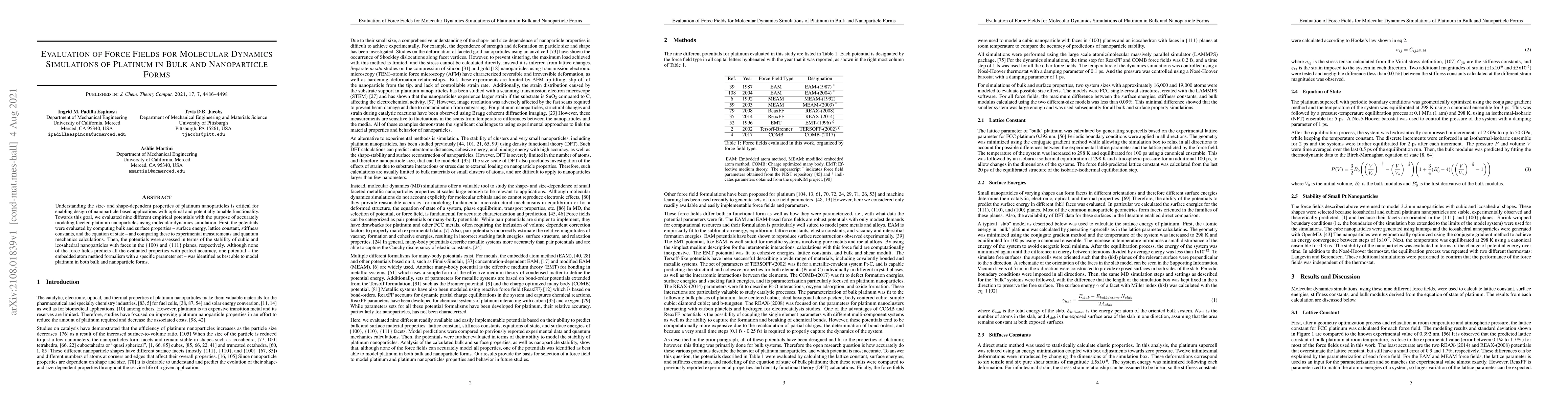 Researchers evaluated nine force fields to accurately model platinum nanoparticles, finding that one potential best models both bulk and nanoparticle forms of platinum with high accuracy.