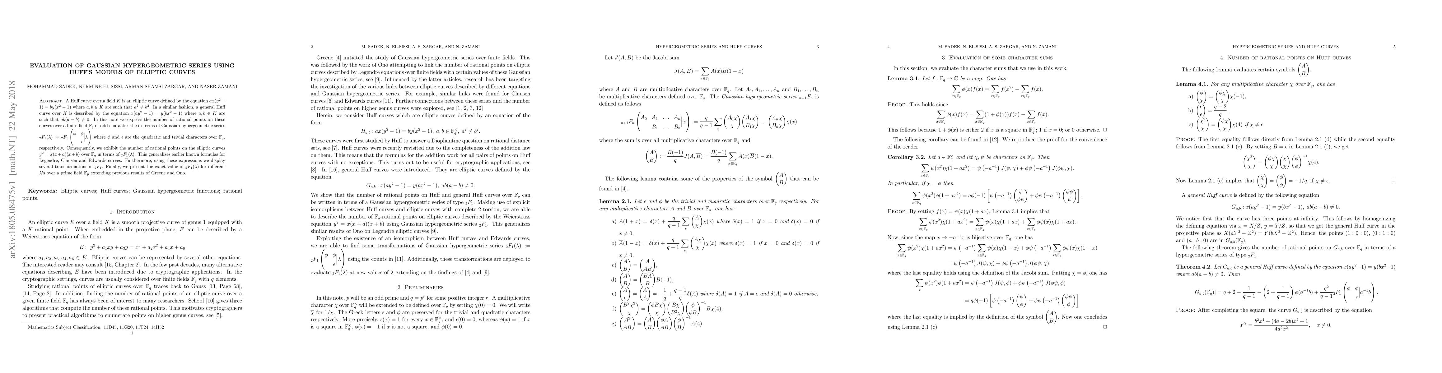 A Huff curve over a field $K$ is an elliptic curve defined by the equation $ax(y^2-1)=by(x^2-1)$ where $a,b\in K$ are such that $a^2\ne b^2$. In a similar fashion, a general Huff curve over $K$ is described by the equation $x(ay^2-1)=y(bx^2-1)$ where $a,b\in K$ are such that $ab(a-b)\ne 0$. In this note we express the number of rational points on these curves over a finite field $\mathbb{F}_q$ of odd characteristic in terms of Gaussian hypergeometric series $\displaystyle {_2F_1}(\lambda):={_2F_1}\left(\begin{matrix} \phi&\phi & \epsilon \end{matrix}\Big| \lambda \right)$ where $\phi$ and $\epsilon$ are the quadratic and trivial characters over $\mathbb{F}_q$, respectively. Consequently, we exhibit the number of rational points on the elliptic curves $y^2=x(x+a)(x+b)$ over $\mathbb{F}_q$ in terms of ${_2F_1}(\lambda)$. This generalizes earlier known formulas for Legendre, Clausen and Edwards curves. Furthermore, using these expressions we display several transformations of ${_2F_1}$. Finally, we present the exact value of $_2F_1(\lambda)$ for different $\lambda$'s over a prime field $\mathbb{F}_p$ extending previous results of Greene and Ono.