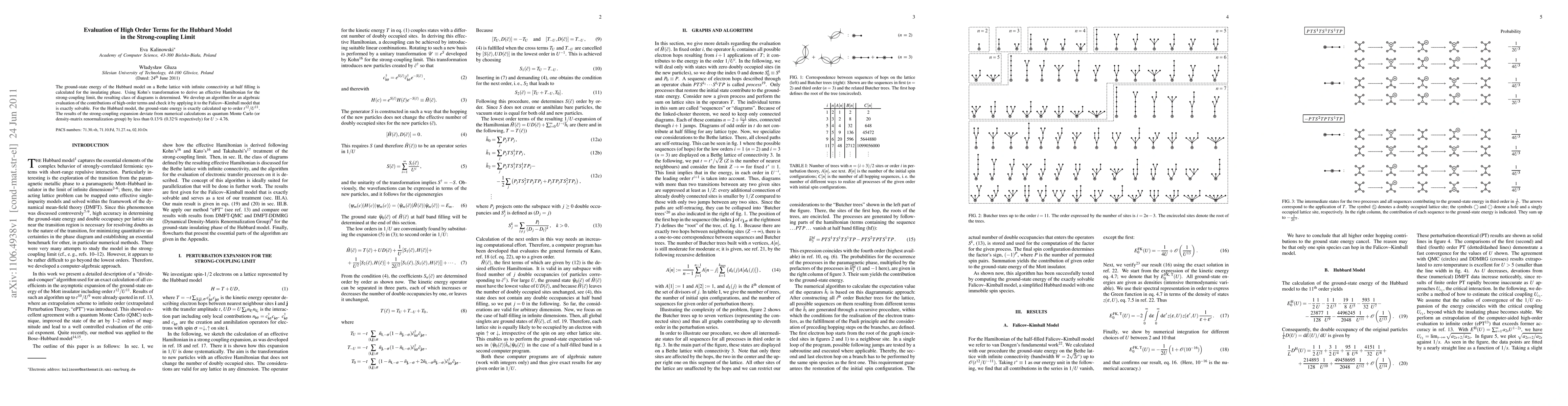 The ground-state energy of the Hubbard model on a Bethe lattice with infinite connectivity at half filling is calculated for the insulating phase. Using Kohn's transformation to derive an effective Hamiltonian for the strong-coupling limit, the resulting class of diagrams is determined. We develop an algorithm for an algebraic evaluation of the contributions of high-order terms and check it by applying it to the Falicov-Kimball model that is exactly solvable. For the Hubbard model, the ground-state energy is exactly calculated up to order t^12/U^11. The results of the strong-coupling expansion deviate from numerical calculations as quantum Monte Carlo (or density-matrix renormalization-group) by less than 0.13% (0.32% respectively) for U>4.76.