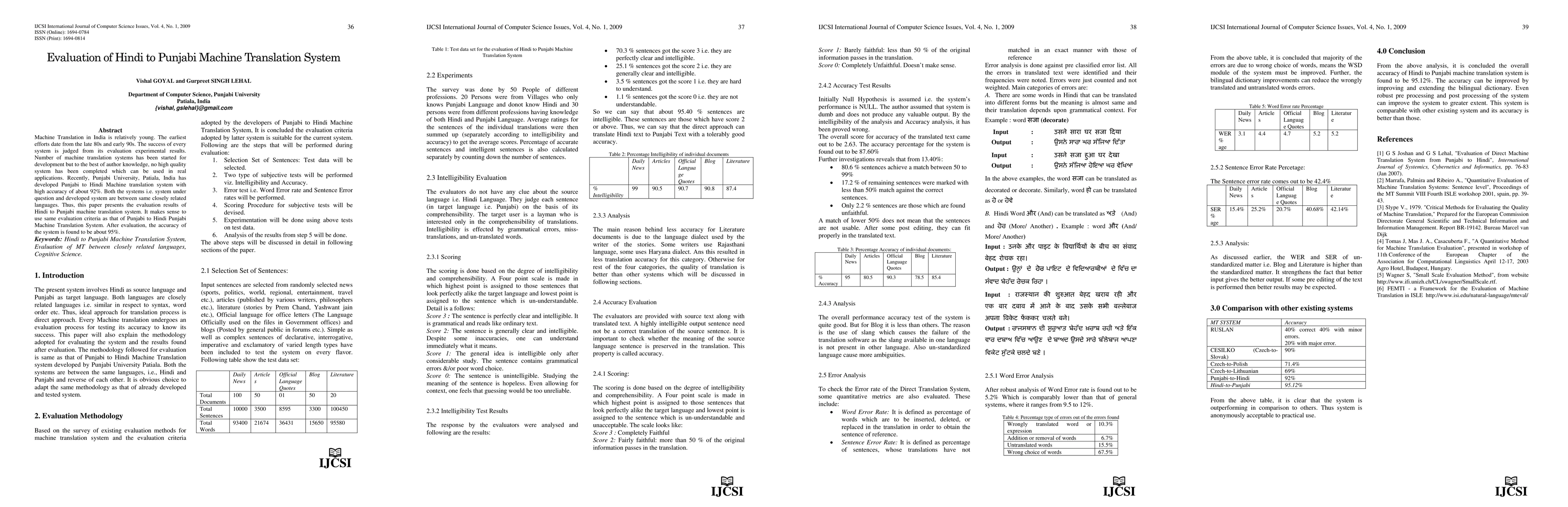 This paper evaluates a newly developed Hindi to Punjabi machine translation system, finding it to achieve an accuracy of approximately 95%. The evaluation criteria used are consistent with those of a previously developed Punjabi to Hindi system, which had an accuracy of about 92%.