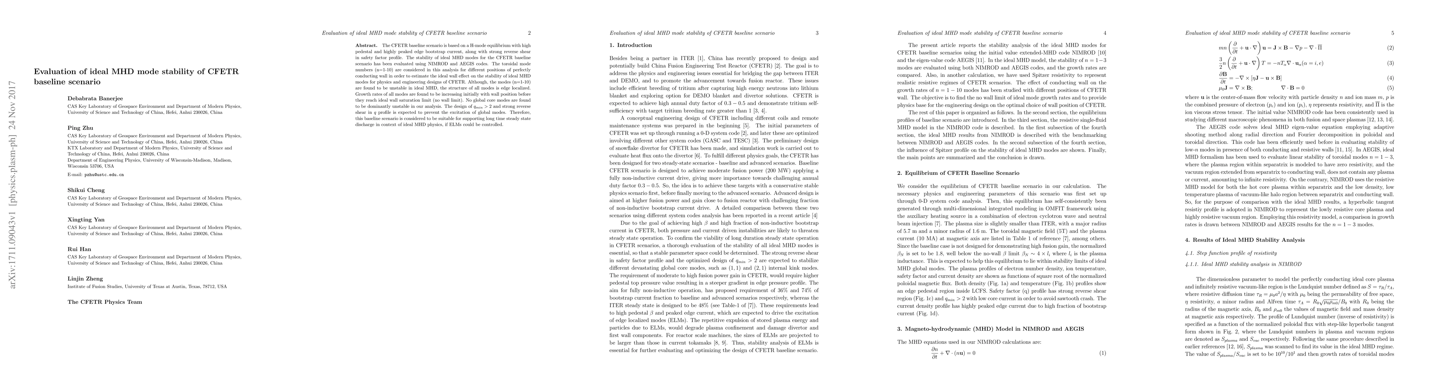This paper evaluates the ideal MHD mode stability of the CFETR baseline scenario, finding that modes (n=1-10) are unstable but edge-localized, with growth rates increasing initially before reaching saturation. The design with $q_{min}>2$ and strong reverse shear is expected to prevent global mode excitation, deeming the scenario suitable for long-term steady-state discharge if edge localized modes (ELMs) can be controlled.