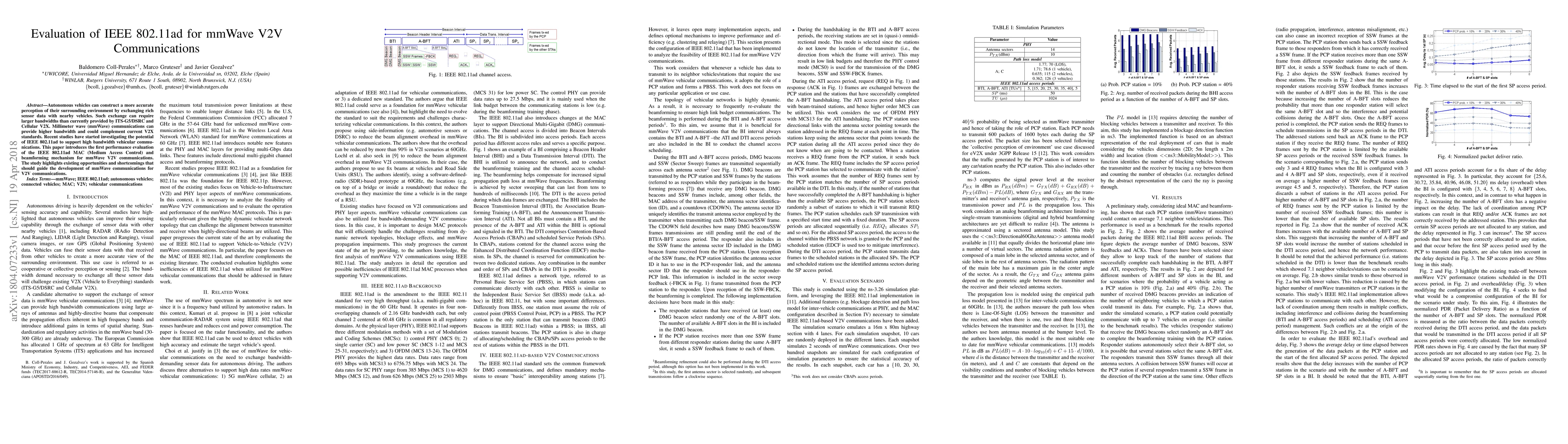 The study evaluates IEEE 802.11ad for mmWave V2V communications using ns-3 simulations, focusing on MAC operations and beamforming with mmWave propagation effects.