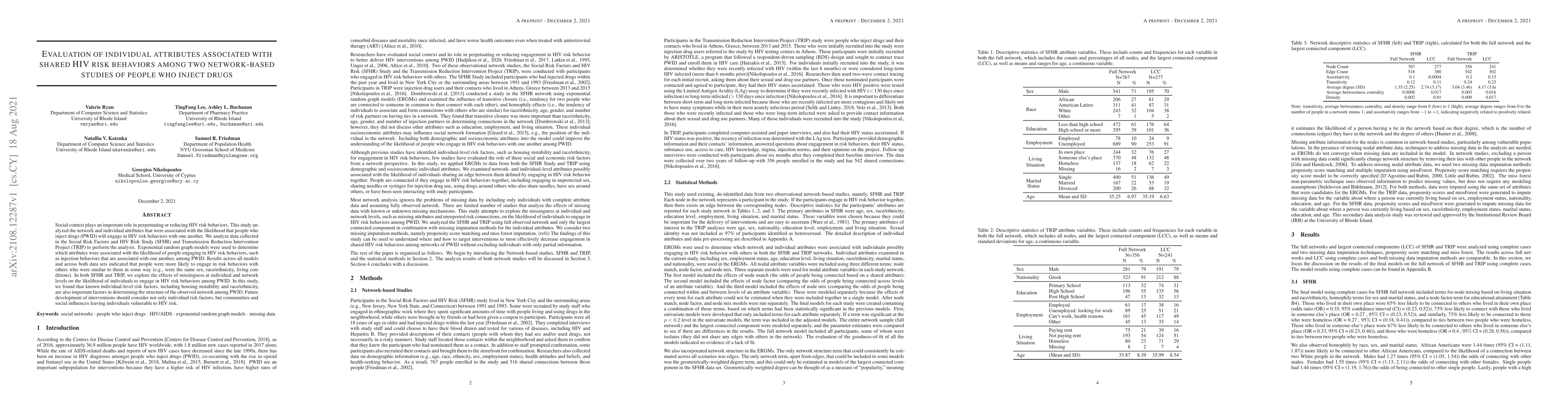 This study evaluates individual attributes linked to shared HIV risk behaviors among people who inject drugs (PWID) using network data from two studies. Findings show that PWID are more likely to engage in risk behaviors with similar individuals, highlighting the importance of social context and community influences in shaping these behaviors.