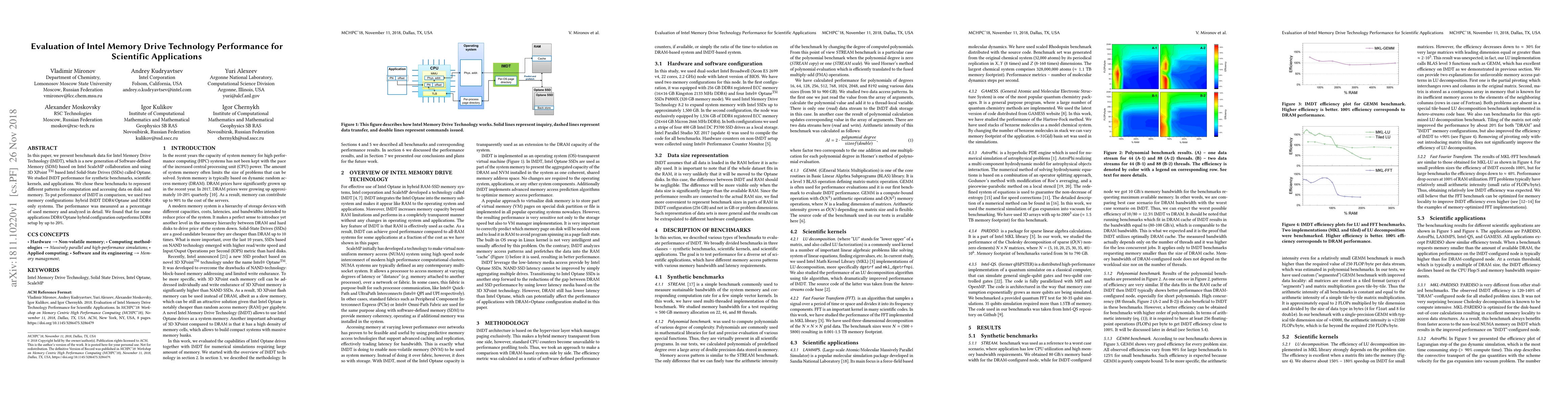 This paper benchmarks Intel Memory Drive Technology (IMDT) for scientific applications, showing that hybrid DDR4/Optane configurations can outperform DDR4 setups by up to 20% in certain applications due to IMDT's advanced Software-defined Memory approach.