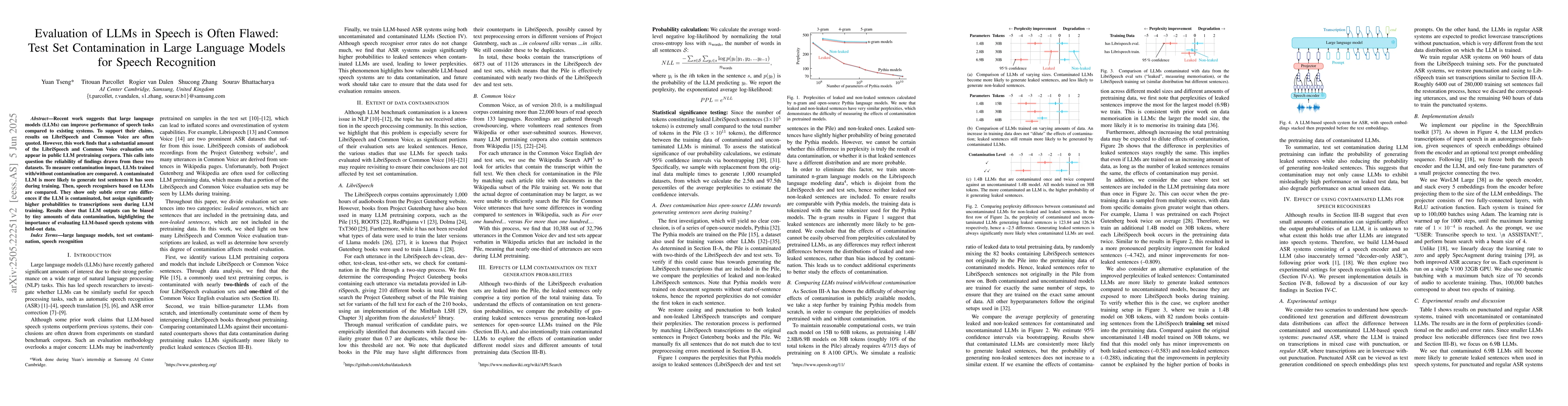 This research highlights the importance of using held-out data for evaluating LLM-based speech systems to avoid biased results caused by test set contamination.