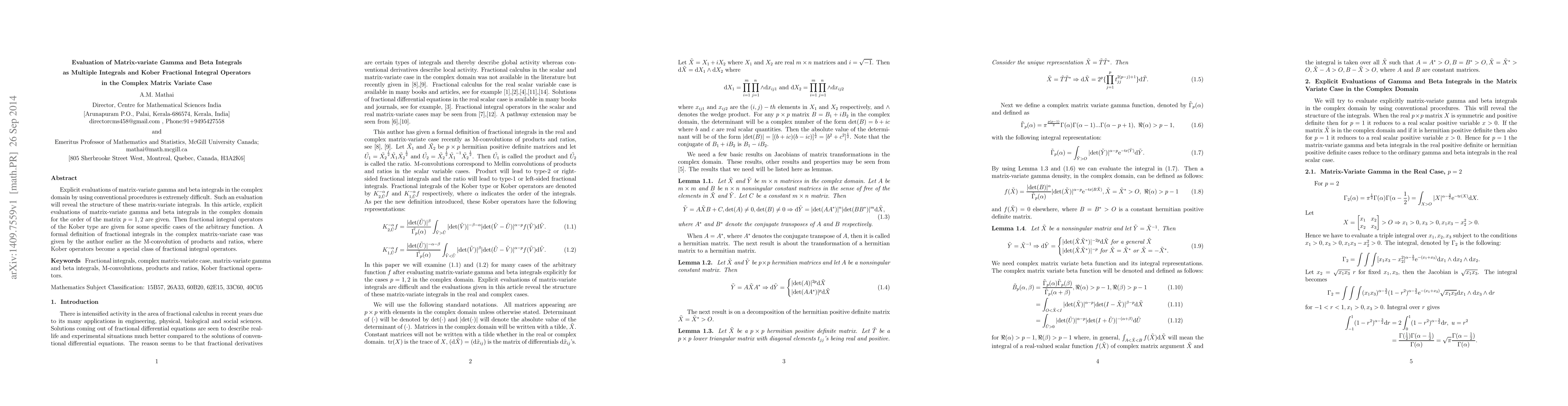 This paper evaluates matrix-variate gamma and beta integrals in the complex domain for matrices of order 1 and 2, revealing their structural properties. It also introduces Kober fractional integral operators as a special class of fractional integrals in the complex matrix-variate case.