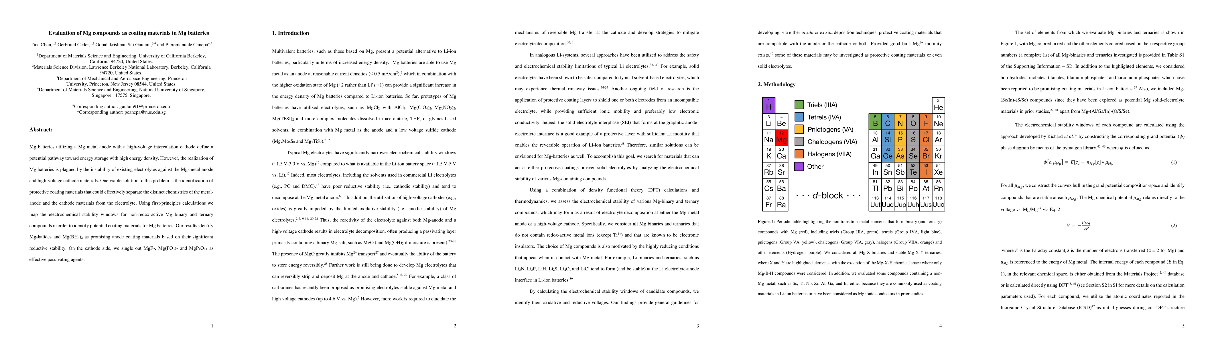 This study uses first-principles calculations to identify stable Mg compounds as coating materials for Mg batteries, focusing on Mg-halides and Mg(BH$_4$)$_2$ for the anode and MgF$_2$, Mg(PO$_3$)$_2$, and MgP$_4$O$_11$ for the cathode to enhance battery performance and stability.