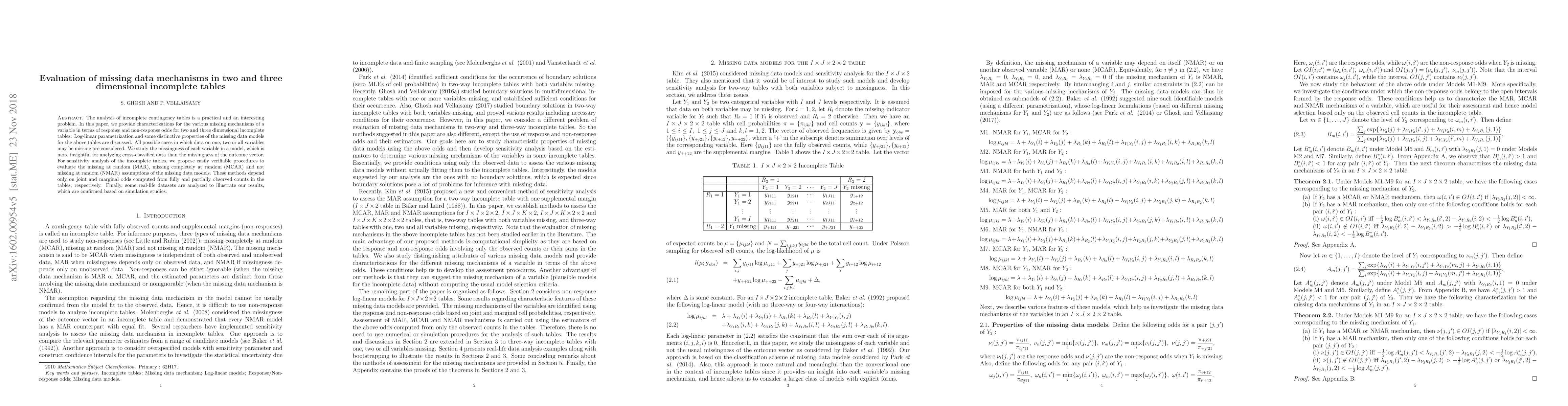 Researchers developed methods to analyze incomplete contingency tables, focusing on missing data mechanisms and sensitivity analysis for various assumptions of missingness. They provided tools for evaluating missing at random, missing completely at random, and not missing at random conditions using joint and marginal odds from observed counts.