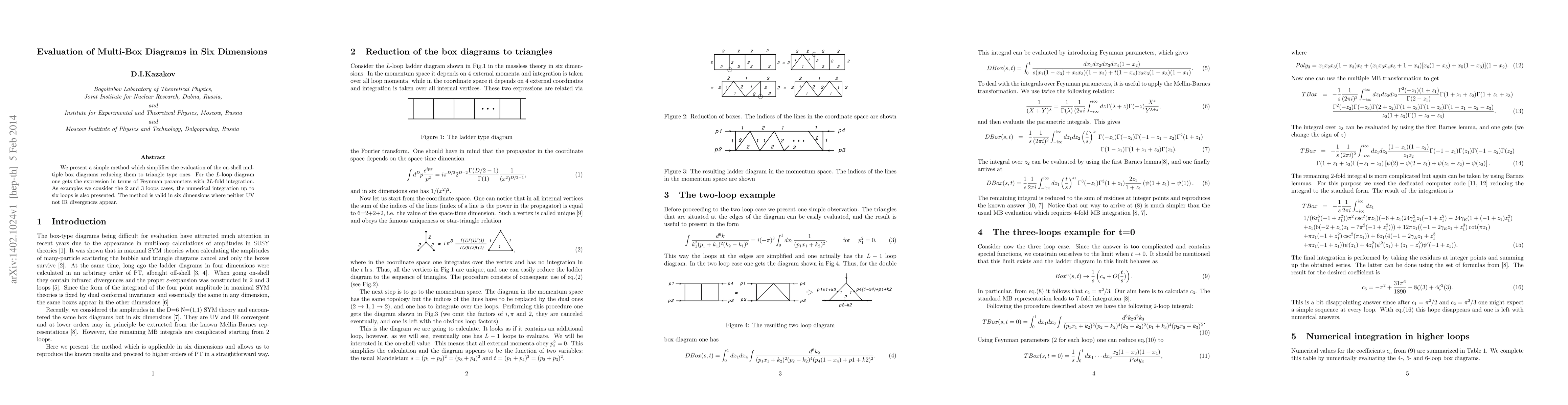 Researchers developed a simplified method to evaluate complex particle interactions in six dimensions, reducing them to simpler triangle diagrams without UV or IR divergences.