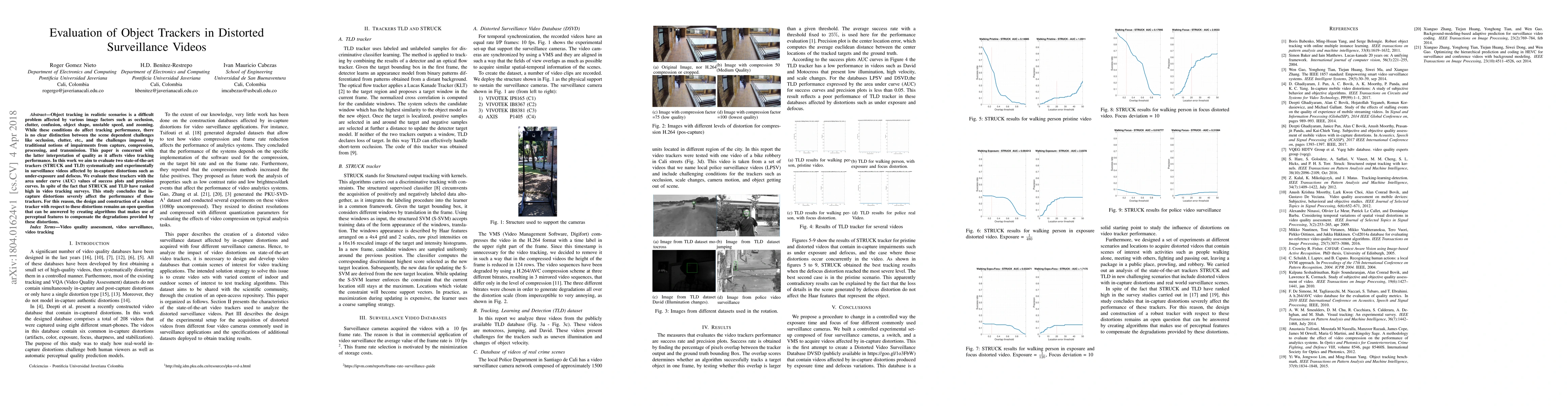 This paper evaluates the performance of two state-of-the-art object trackers, STRUCK and TLD, in surveillance videos with in-capture distortions like under-exposure and defocus. Despite their high rankings, the study finds that these trackers' performance is severely impacted by such distortions, highlighting the need for robust tracking algorithms that utilize perceptual features.