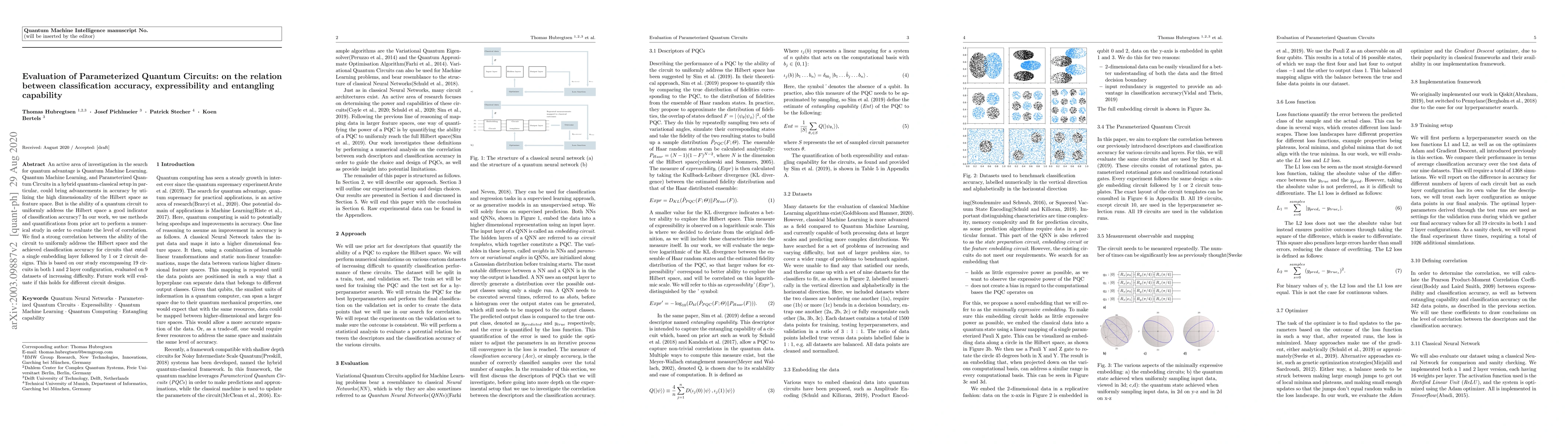 A study evaluates the relationship between parameterized quantum circuits' ability to uniformly address the Hilbert space and classification accuracy, finding a strong correlation for single embedding layers with 1 or 2 circuit designs.