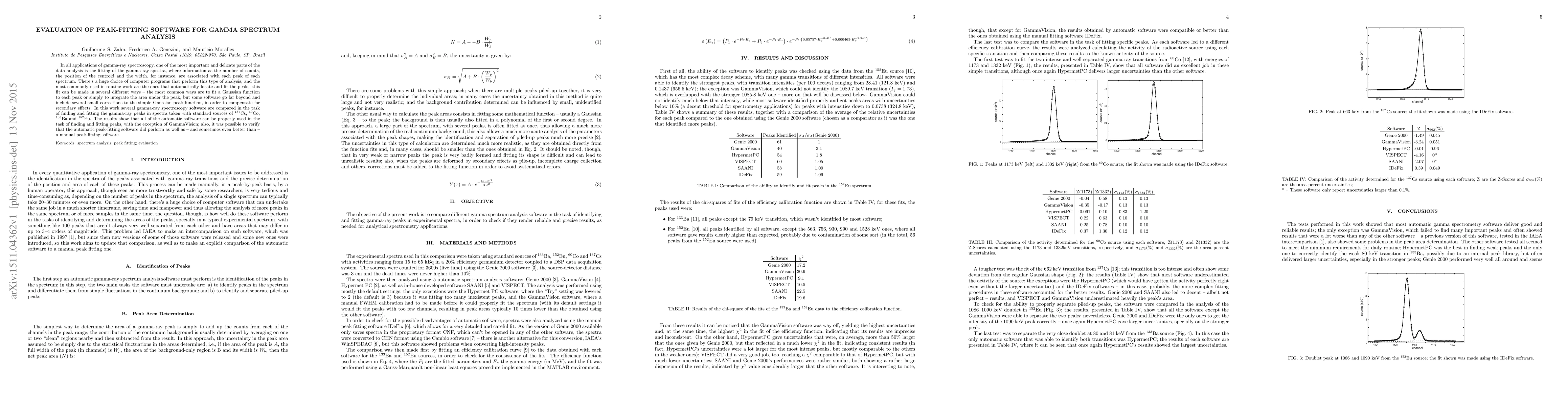 In all applications of gamma-ray spectroscopy, one of the most important and delicate parts of the data analysis is the fitting of the gamma-ray spectra, where information as the number of counts, the position of the centroid and the width, for instance, are associated with each peak of each spectrum. There's a huge choice of computer programs that perform this type of analysis, and the most commonly used in routine work are the ones that automatically locate and fit the peaks; this fit can be made in several different ways -- the most common ways are to fit a Gaussian function to each peak or simply to integrate the area under the peak, but some software go far beyond and include several small corrections to the simple Gaussian peak function, in order to compensate for secondary effects. In this work several gamma-ray spectroscopy software are compared in the task of finding and fitting the gamma-ray peaks in spectra taken with standard sources of $^{137}$Cs, $^{60}$Co, $^{133}$Ba and $^{152}$Eu. The results show that all of the automatic software can be properly used in the task of finding and fitting peaks, with the exception of GammaVision; also, it was possible to verify that the automatic peak-fitting software did perform as well as -- and sometimes even better than -- a manual peak-fitting software.