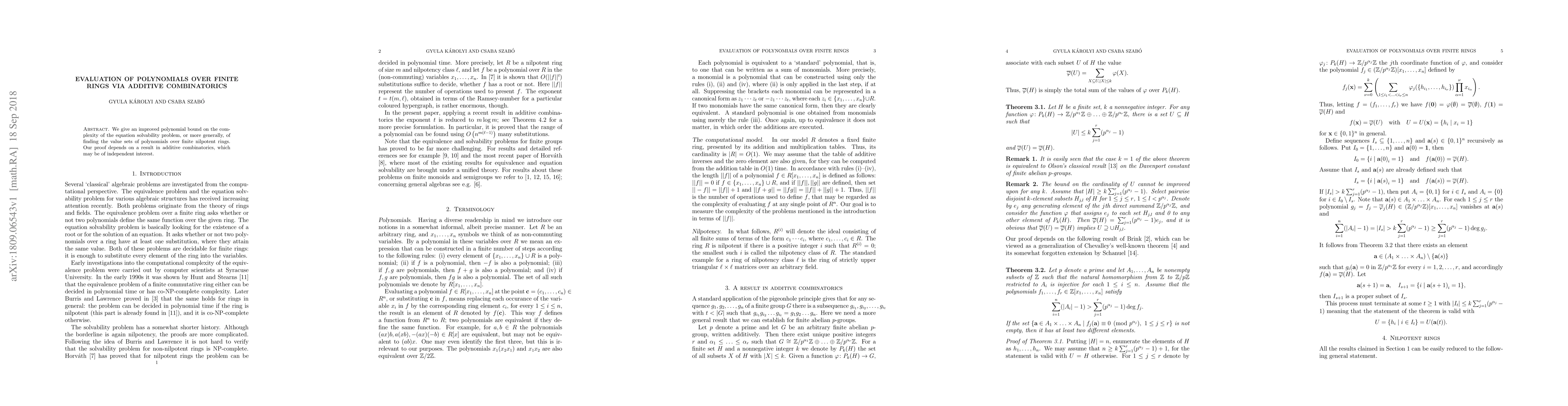 This paper presents an improved polynomial complexity bound for solving equations and determining value sets of polynomials over finite nilpotent rings, leveraging results from additive combinatorics that could stand on their own.