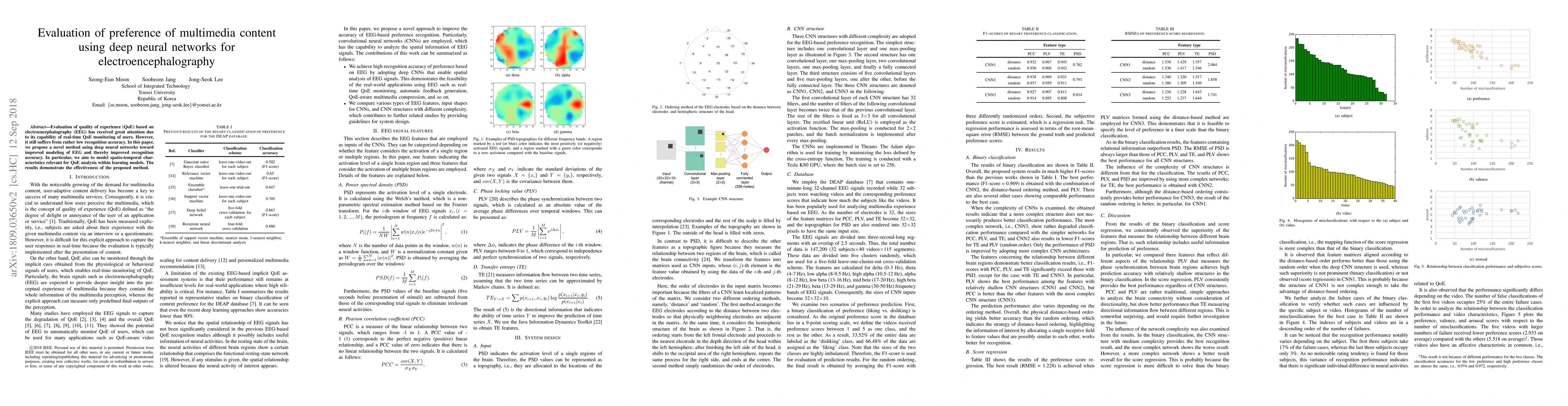 Evaluation of quality of experience (QoE) based on electroencephalography (EEG) has received great attention due to its capability of real-time QoE monitoring of users. However, it still suffers from rather low recognition accuracy. In this paper, we propose a novel method using deep neural networks toward improved modeling of EEG and thereby improved recognition accuracy. In particular, we aim to model spatio-temporal characteristics relevant for QoE analysis within learning models. The results demonstrate the effectiveness of the proposed method.