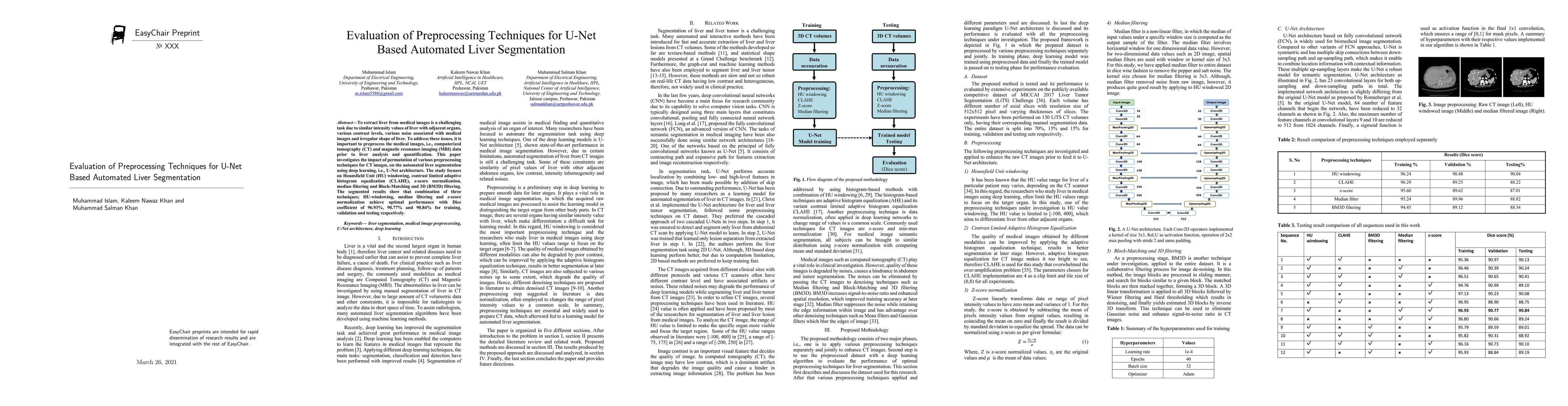 This study evaluates the impact of preprocessing techniques on U-Net based automated liver segmentation in medical images, finding that a combination of HU-windowing, median filtering, and z-score normalization achieve optimal performance. The results show promise for improving accuracy in liver analysis and quantification.