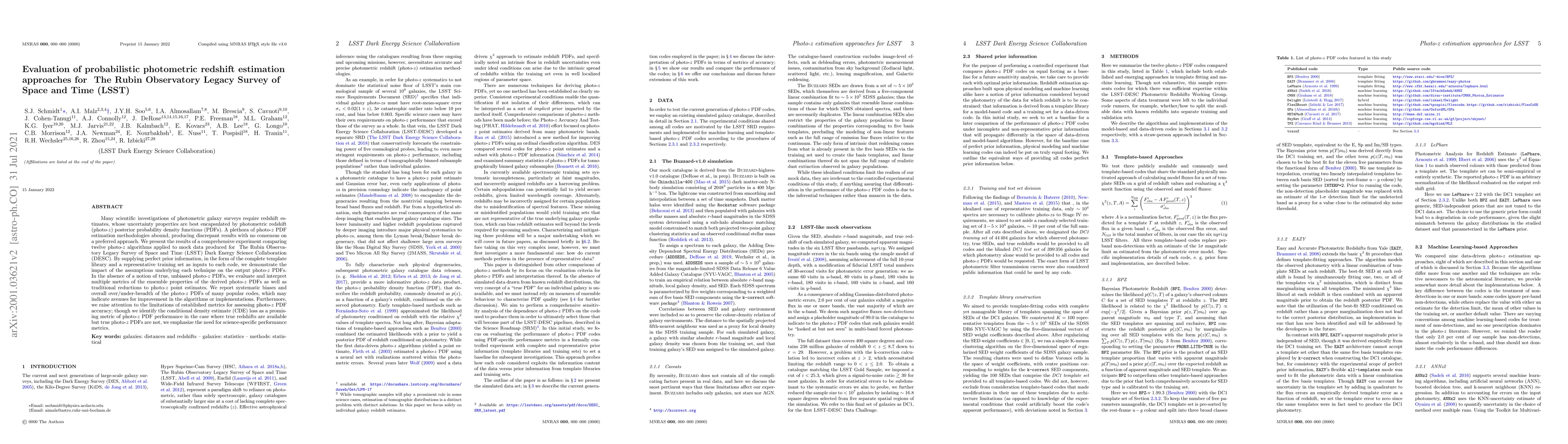 Many scientific investigations of photometric galaxy surveys require redshift estimates, whose uncertainty properties are best encapsulated by photometric redshift (photo-z) posterior probability density functions (PDFs). A plethora of photo-z PDF estimation methodologies abound, producing discrepant results with no consensus on a preferred approach. We present the results of a comprehensive experiment comparing twelve photo-z algorithms applied to mock data produced for The Rubin Observatory Legacy Survey of Space and Time (LSST) Dark Energy Science Collaboration (DESC). By supplying perfect prior information, in the form of the complete template library and a representative training set as inputs to each code, we demonstrate the impact of the assumptions underlying each technique on the output photo-z PDFs. In the absence of a notion of true, unbiased photo-z PDFs, we evaluate and interpret multiple metrics of the ensemble properties of the derived photo-z PDFs as well as traditional reductions to photo-z point estimates. We report systematic biases and overall over/under-breadth of the photo-z PDFs of many popular codes, which may indicate avenues for improvement in the algorithms or implementations. Furthermore, we raise attention to the limitations of established metrics for assessing photo-z PDF accuracy; though we identify the conditional density estimate (CDE) loss as a promising metric of photo-z PDF performance in the case where true redshifts are available but true photo-z PDFs are not, we emphasize the need for science-specific performancemetrics.