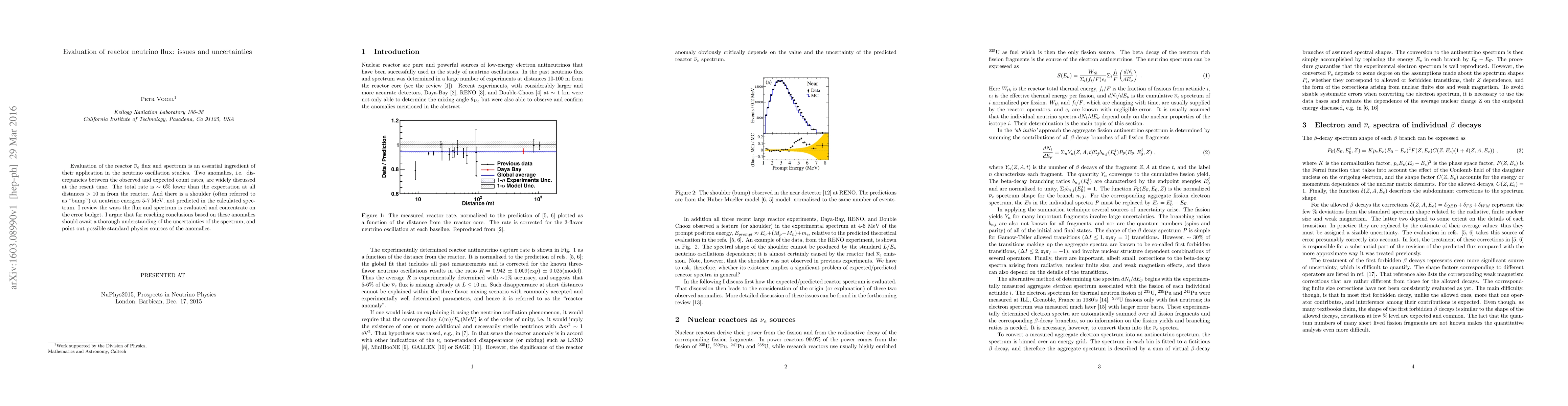 This paper evaluates reactor neutrino flux and spectrum, highlighting discrepancies in observed and expected count rates, including a 6% lower total rate and an unexplained "bump" at 5-7 MeV. It emphasizes the need for a comprehensive understanding of uncertainties before drawing conclusions, and suggests potential standard physics explanations for these anomalies.