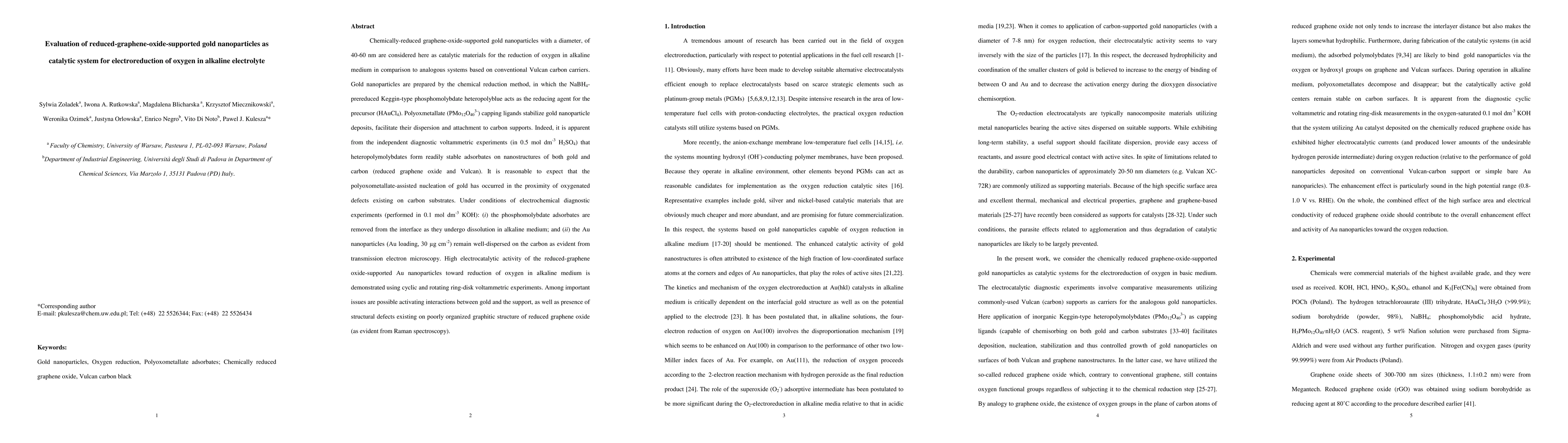 This study evaluates reduced graphene oxide-supported gold nanoparticles as a catalytic system for oxygen reduction in alkaline electrolyte. The gold nanoparticles are stabilized by polyoxmetallate ligands and remain well-dispersed on the graphene support, demonstrating high electrocatalytic activity.
