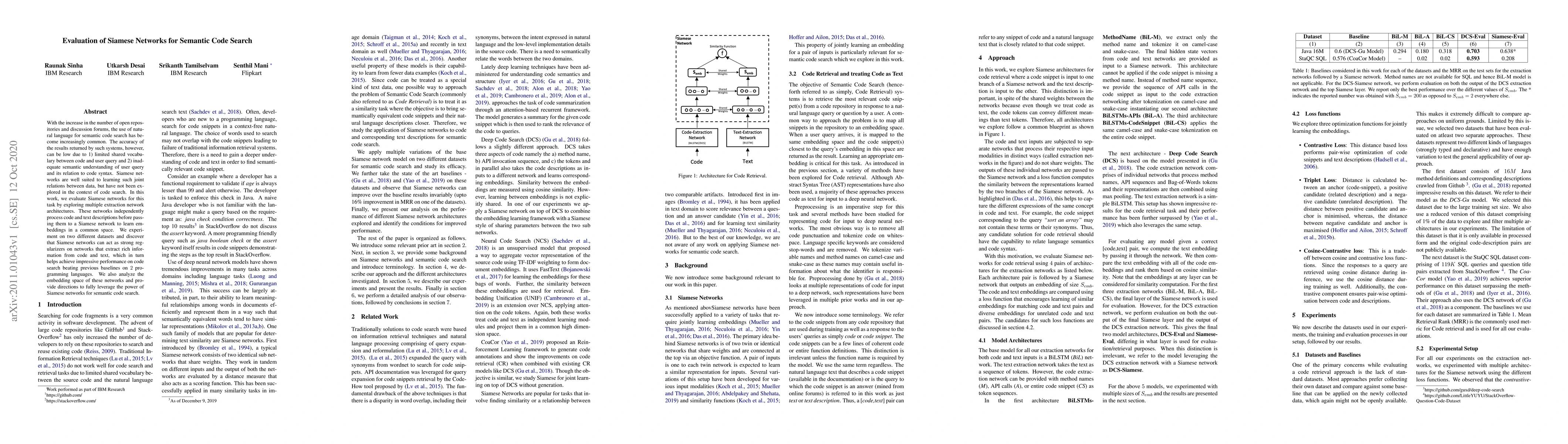 The study achieves impressive results beating previous baselines on 2 programming languages and provides directions to fully leverage the power of Siamese networks for semantic code search.