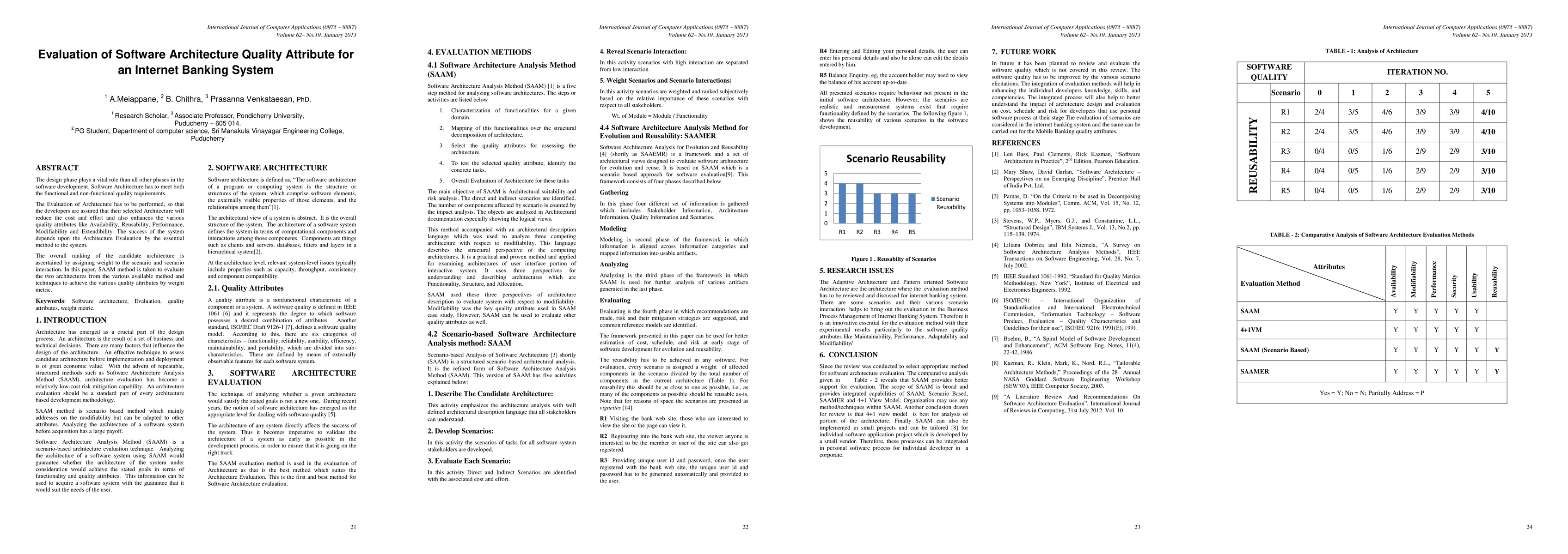 This paper evaluates two software architectures for an internet banking system to determine which design meets both functional and non-functional quality requirements, such as availability, performance, and modifiability, using the SAAM method.
