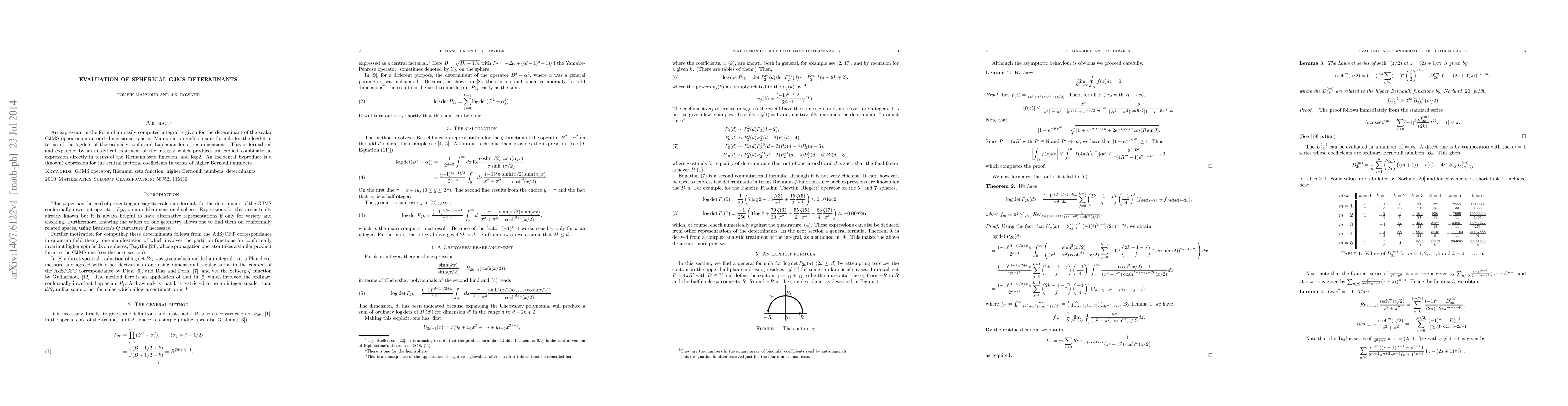 An expression in the form of an easily computed integral is given for the determinant of the scalar GJMS operator on an odd--dimensional sphere. Manipulation yields a sum formula for the logdet in terms of the logdets of the ordinary conformal Laplacian for other dimensions. This is formalised and expanded by an analytical treatment of the integral which produces an explicit combinatorial expression directly in terms of the Riemann zeta function, and $\log2$. An incidental byproduct is a (known) expression for the central factorial coefficients in terms of higher Bernoulli numbers.