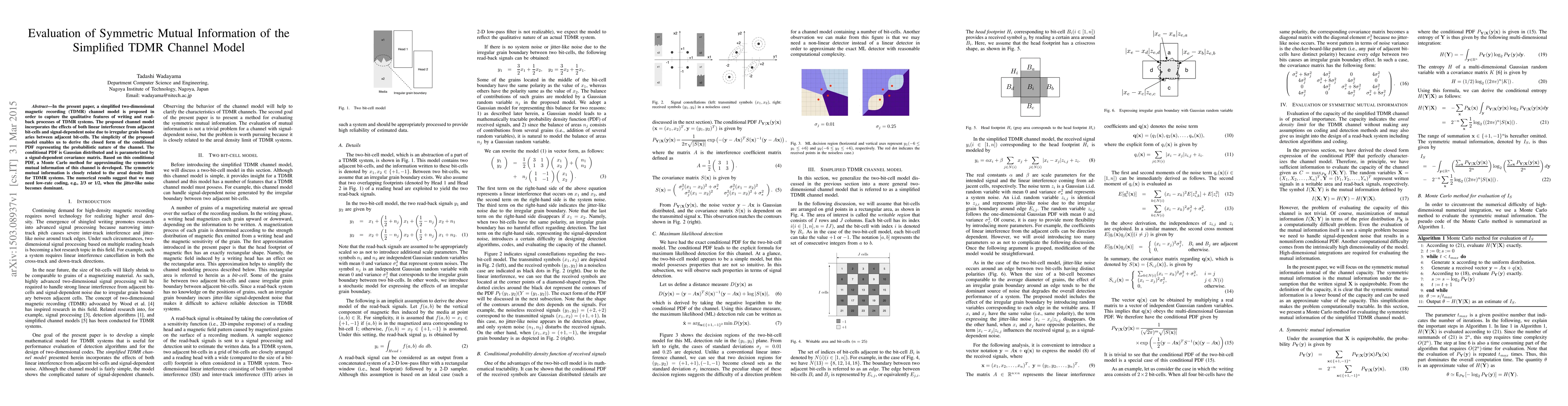 A simplified TDMR channel model is proposed to capture writing and read-back processes, revealing a need for low-rate coding due to dominant jitter-like noise at certain rates.