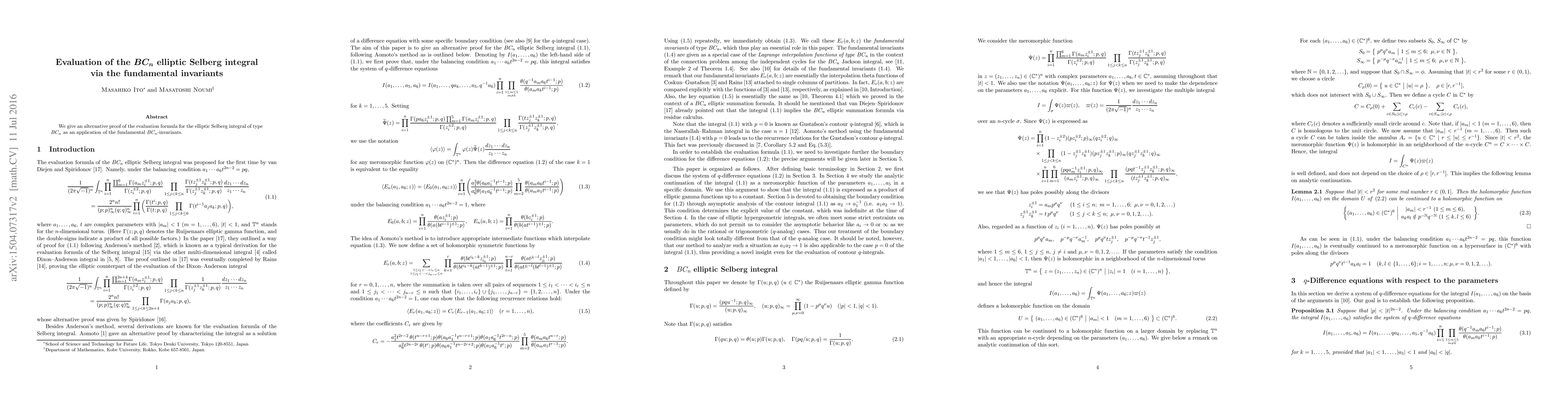We give an alternative proof of the evaluation formula for the elliptic Selberg integral of type $BC_n$ as an application of the fundamental $BC_n$-invariants.