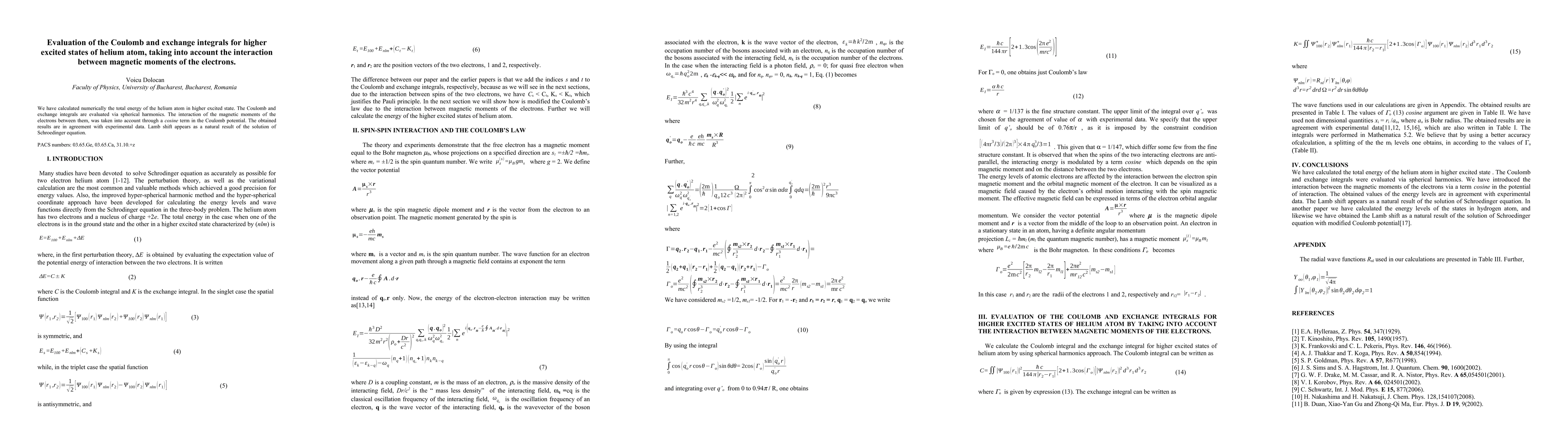 This paper evaluates Coulomb and exchange integrals for helium atom's higher excited states, incorporating electron-electron and electron-nucleus magnetic interactions via a cosine term in the Coulomb potential. Results align with experimental data.