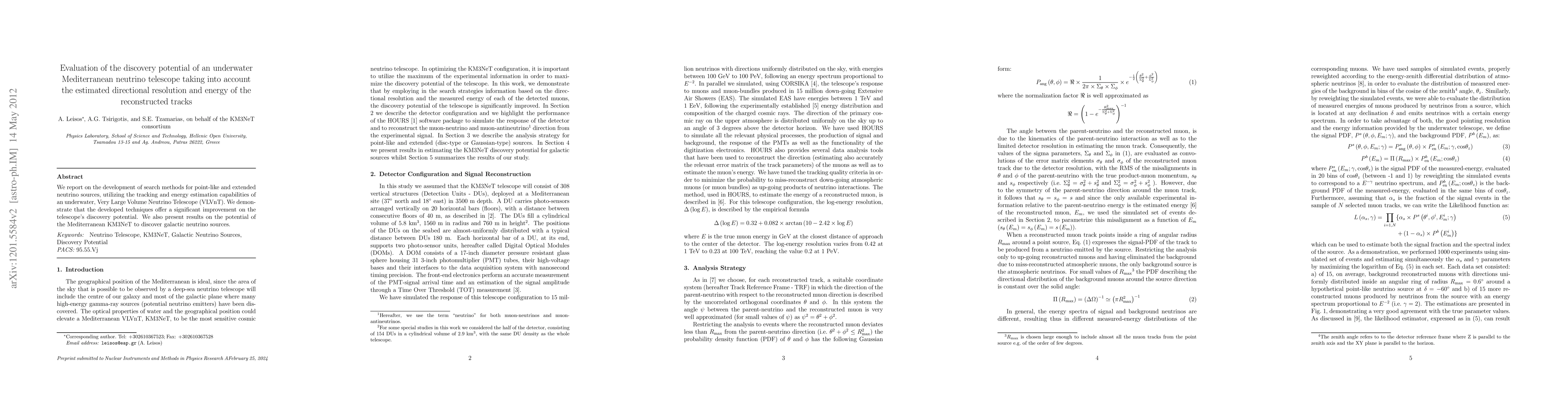 The paper presents improved search methods for neutrino sources using an underwater Very Large Volume Neutrino Telescope (VLVnT), enhancing its discovery potential. It also evaluates KM3NeT's capability in the Mediterranean to detect galactic neutrino sources.